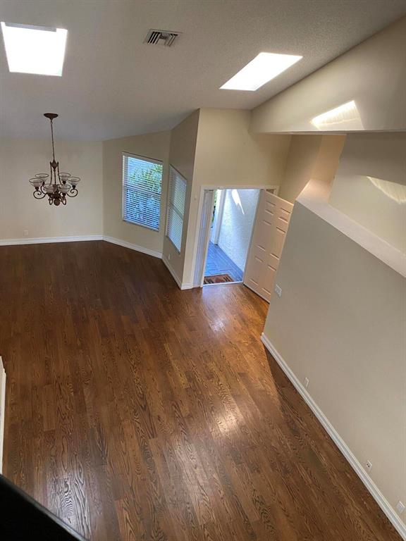 Large 2 story townhome, new roof 2019, wood floors, high volumn ceilings with skylights, master down, 2 bed rooms up, paved private patio with beautiful landscaping, kitchen opens to family room, french doors thru out, gated community, located central Boca, near Town Center and swim and Racquet Club