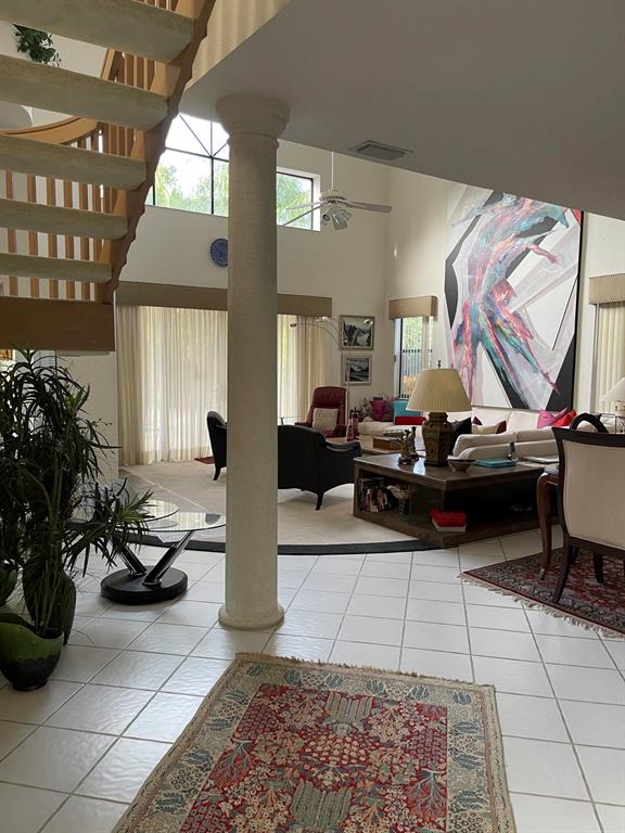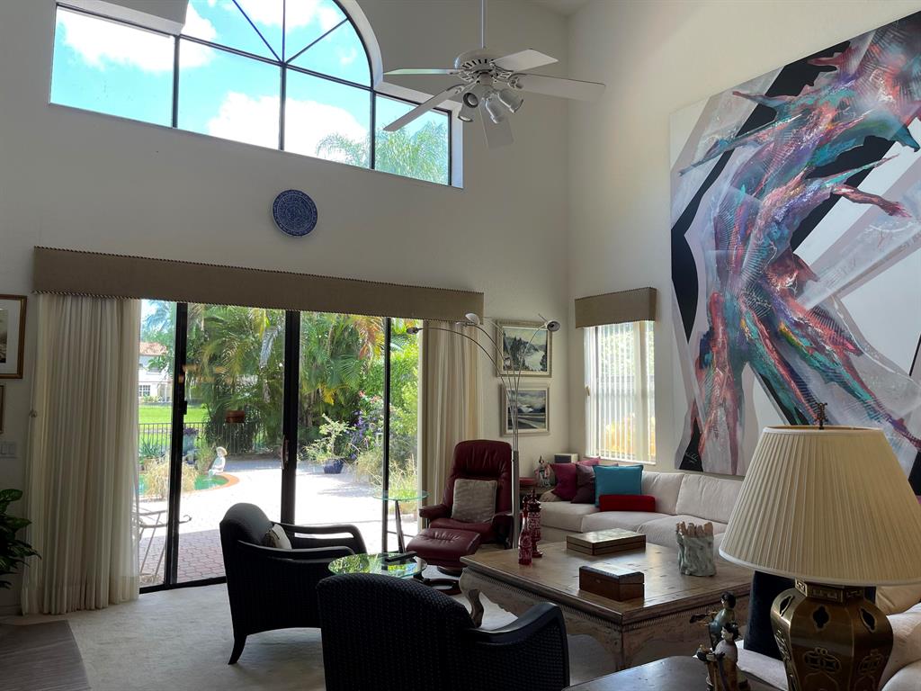 This Gorgeous Single Family home is located in upscale section of Boca Pointe Valencia Subdivision. Soaring 18' ceilings, wide open floor plan, and an abundance of windows just fill this home with natural light. This pool home is located on a Lake with a tranquil lake view in a very private tropical setting. Master is downstairs that opens up to the pool area. On the second floor there is a large loft area or tv relaxing space. Boca Country Club membership is optional. There have multiple memberships to satisfy everyone. The Air conditioner is only 3 years old. The roof is 7 years old, the flat roof is new this year. This home was the Model home.