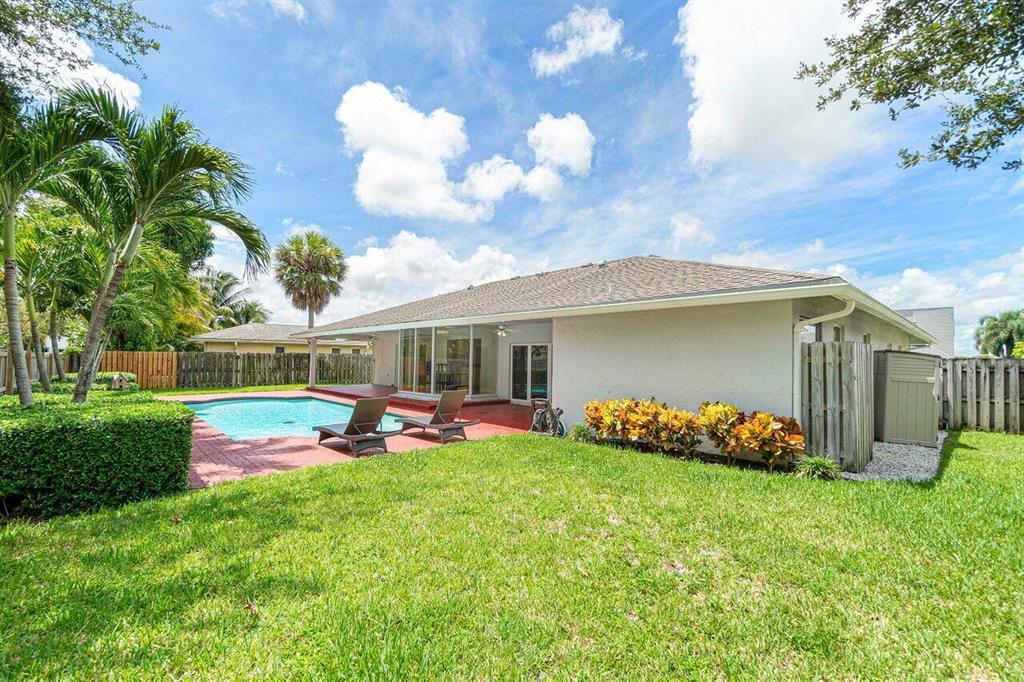 This is the home you have been waiting for!This updated single level home is idyllically located on a cul-de-sac street in the desirable Pheasant Walk neighborhood.This open floor-plan flows out to a large fenced yard featuring a sparkling blue pool and covered lanai with no rear neighbors.The spacious kitchen is updated with custom cabinetry, island cooktop, granite counter tops and Bosch stainless steel appliances. Located in an A rated school district, with low hoa fees in Boca Raton with the beach, shops, and parks all close by! This home features a newer roof, A/C, newer flooring, Samsung washer and dryer and hot water heater.
