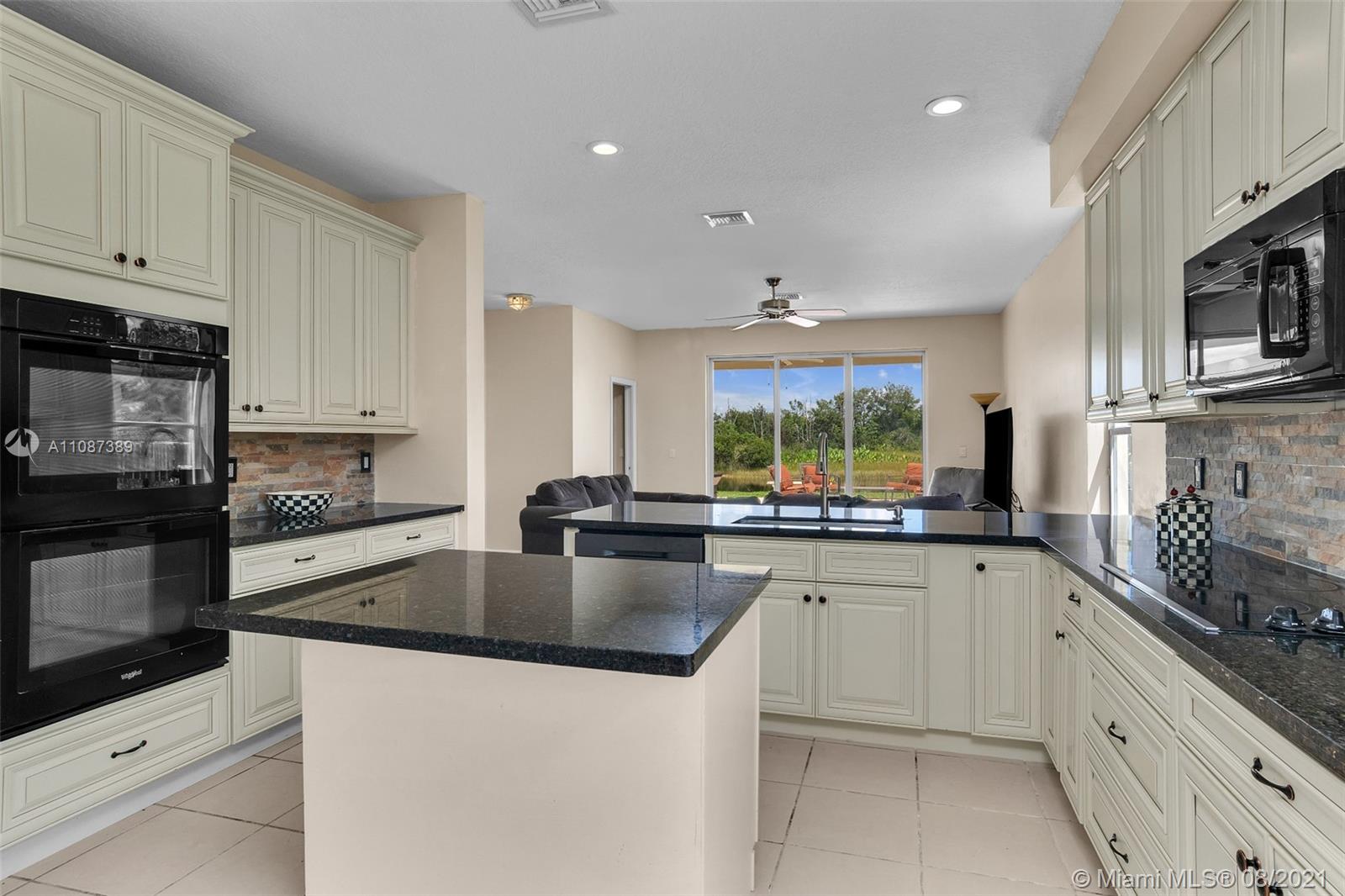 Location, location, location. Beautiful waterfront pool home in the sought after gated community of Encantada - perfect with 6 bedrooms, 4.5 baths and a 3-car garage. Walking through the front door, you see a breathtaking view of the water and a natural preserve. The dining room and living room combination makes for a wonderful social area while you enjoy soaring high ceilings open to the second floor. As you walk into the family room and kitchen area, you won’t be able to take your eyes off the beautiful kitchen renovation. This dream kitchen includes solid wood cabinets, granite countertops, newer appliances and an amazing stone feature wall and backsplash. There’s even room for a kitchen dining set.