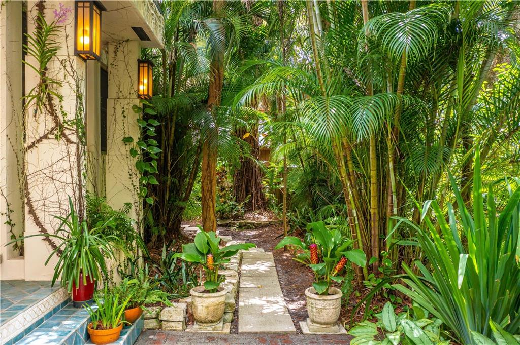 This beautiful home is located in the desirable Riverland Woods, a tree covered area surrounded by beautiful live oak trees, native palms and all nature associated with the wildlife. This residence is a one-of-a-kind custom home based on the Frank Lloyd Wright Biltmore Arizona bungalows built in 1929. It has a brand new kitchen with direct access to the exterior courtyard, quartz counter tops, large dining island, new stove, dishwasher and a commercial roof-top kitchen exhaust. The roof has 3 layers of elastomeric coating installed in 2020 for a cool protective roof. Newly painted interior, refinished floors in 2021 and High ceilings 9',10, 13' feet. The home also offers a wall enclosed courtyard with a concrete pool style jacuzzi. Centrally located near to downtown and all major highways