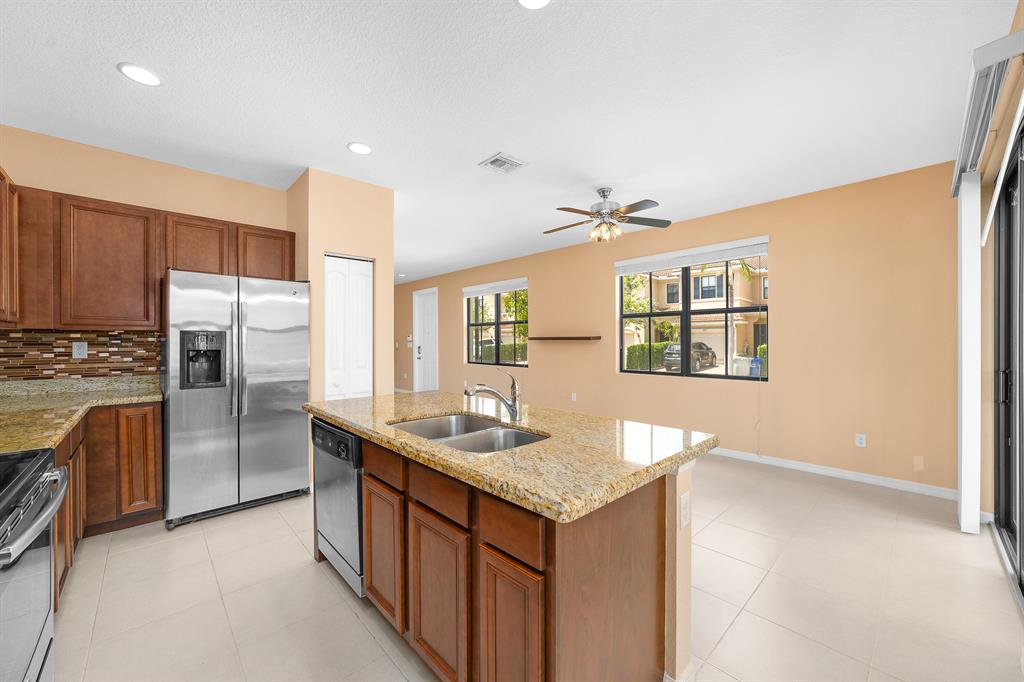 Incredible corner unit townhouse in Madison Place offers tons of natural light and stunning water views. Built in 2016, this home offers a downstairs open living area and kitchen featuring granite counters and stainless steel appliances. Up[stairs are three spacious bedrooms including a master suite with a large walk-in closet. Move-in ready with neutral colors, high ceilings, impact windows and much more. Community has super low HOA ($98.00 month) which includes a gate, community pool. and tot lot. Located close to shops, highways, across from the tri-rail and a short drive to the beach.