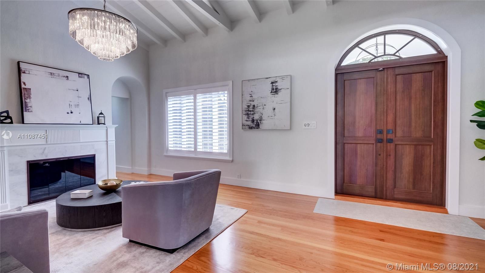 Unique opportunity in the heart of coveted Coral Gable’s Golden Triangle. 1930's renovated 5 Br 4 Ba home on quiet tree-lined 16,500 sqft lot. Property includes newly-built indoor/outdoor entertainment room w/ impact glass sliding doors, full bar & lynx grill + automatic roll down screen. State-of-the-art kitchen w/ subzero/WOLF, Miele appliances, oversized kitchen island w/ galley workstation sink and custom-integrated table, ideal for entertaining. Exquisite shell-stone and oak hardwood flooring. Large great room w/ floor-to-ceiling windows overlooking pool and yard area, offers plenty of natural sunlight. Lush landscaping w/ custom lighting. Extra features: Automatic standby generator w/ 500-gallon underground propane tank, 8 security cameras, Swat repellent integrated system & more!
