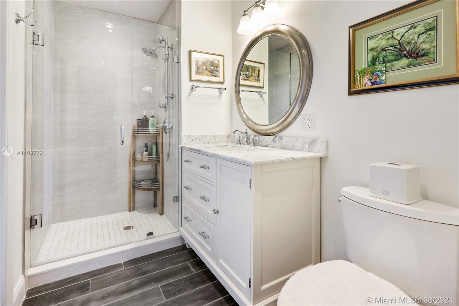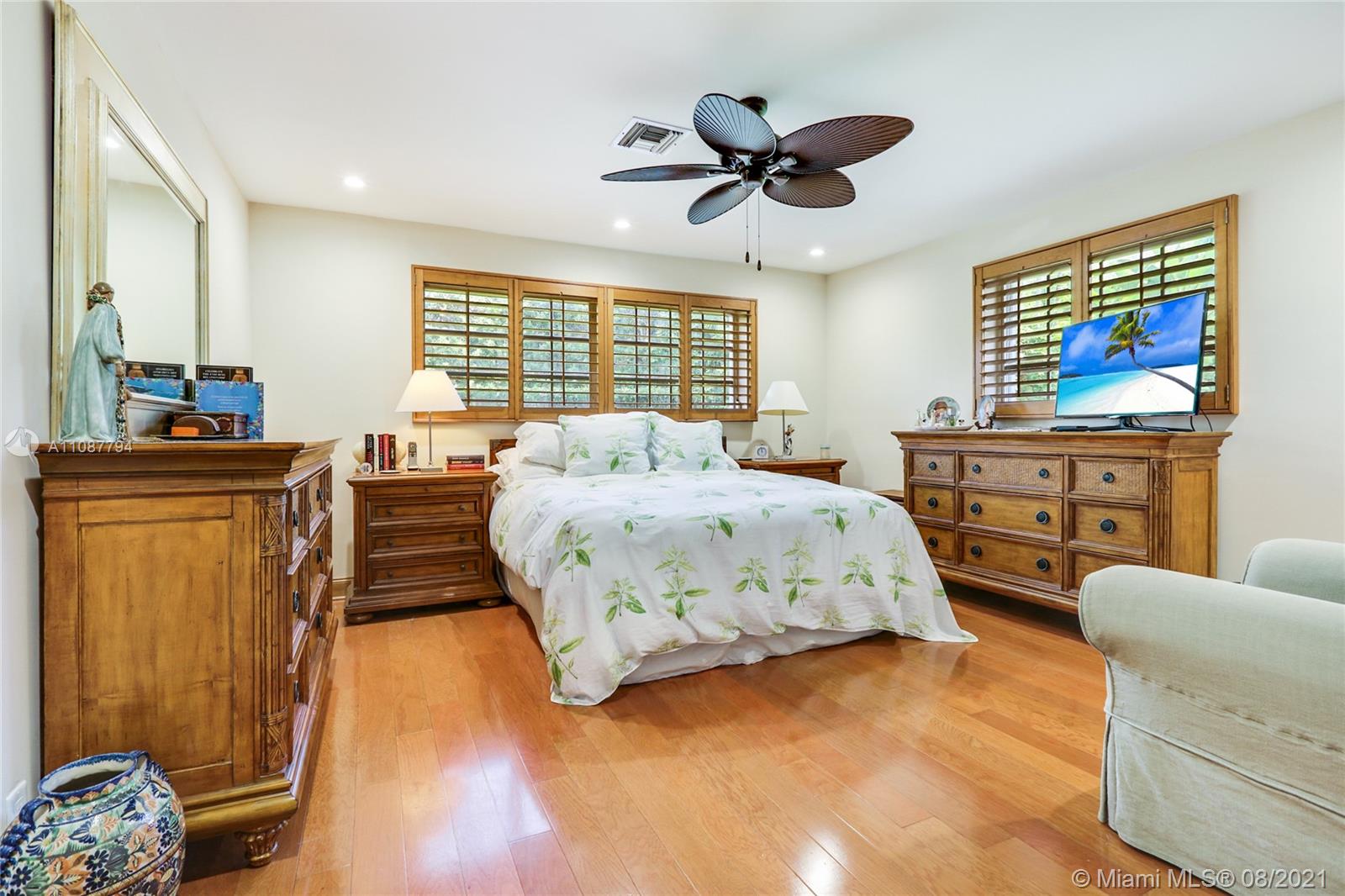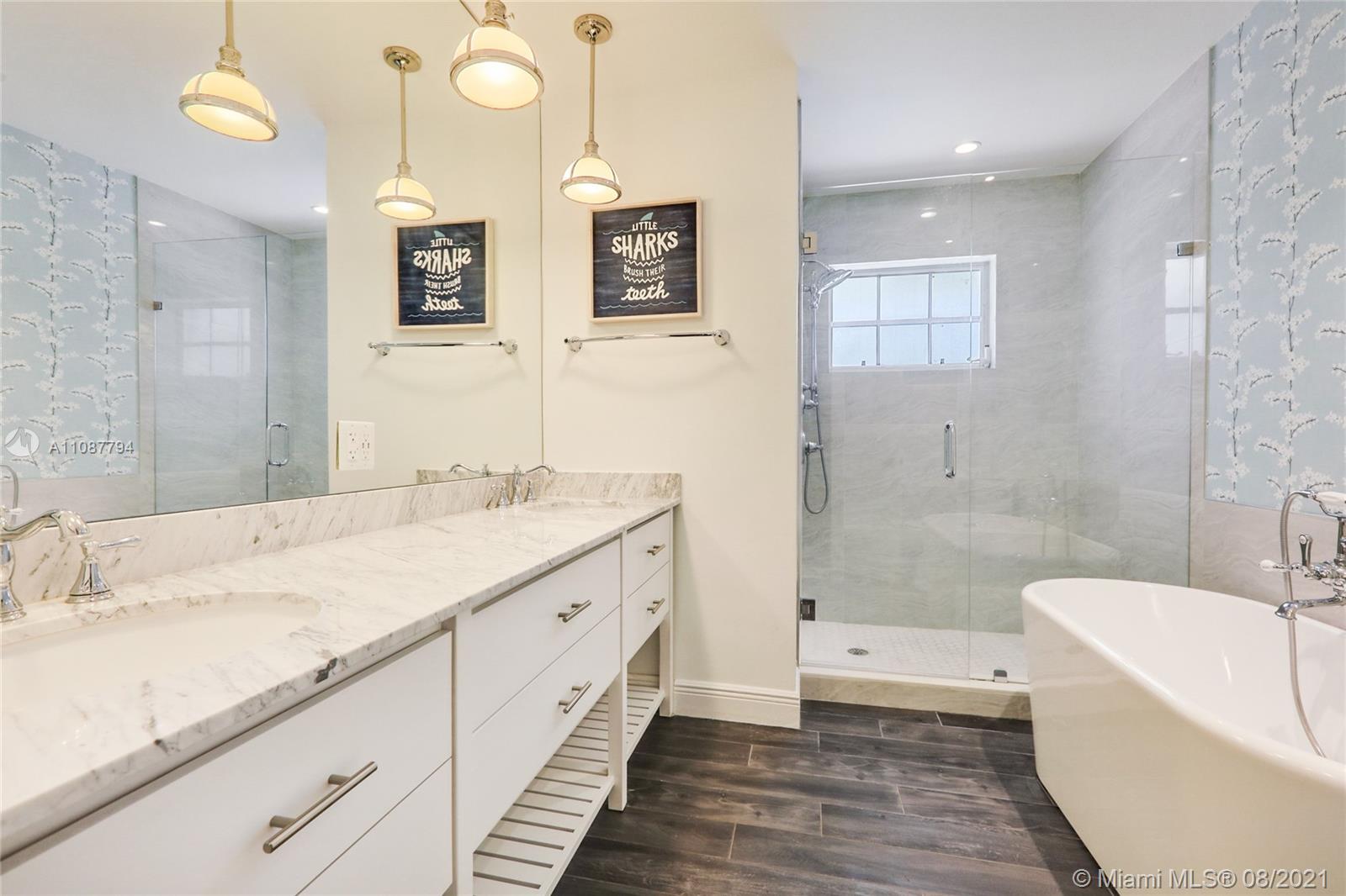Walk in and fall love! Beautiful recently-updated move-in-ready ranch home boasts exquisite marble and wood floors and expansive spaces that are ideal for happy family living and gracious entertaining. Open concept living with sensational updates throughout. You'll love the large well-designed gourmet kitchen with granite counters, gas range, abundant cabinetry and includes a sunny breakfast area, snack bar, and easy access to the pool and both the formal and informal dining areas. Impact glass doors open to Amazing terrace and sparkling pool for family fun and guest entertainment. The principal bathroom offers a spa-like vibe with frameless shower. The curb appeal offers lush tropical landscaping. Only minutes to world-class shopping, dining and entertainment options!