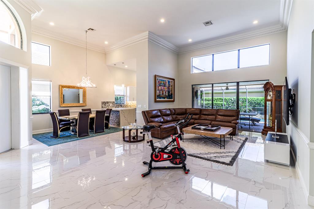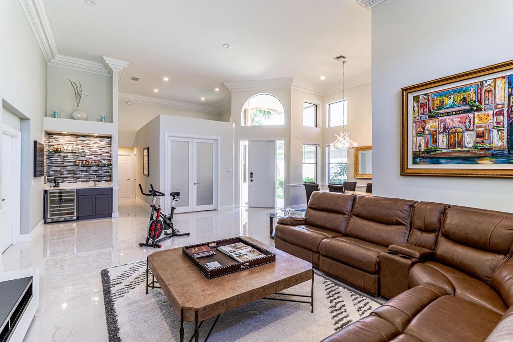 Experience the ultimate luxury Florida lifestyle in this spectacular home with private pool located in the desirable Stonebridge Country Club community. Design details include soaring vaulted ceilings, crown molding, skylights, gleaming ceramic tile, and sophisticated fixtures and finishes including wet bar w/ wine fridge. Fabulous eat-in kitchen features Shaker-style cabinetry, quartz countertops, stainless steel appliances, tile backsplash, and seated waterfall bar. Owner's suite features direct pool access and spa-like bath with double-sink vanity, vessel tub, and walk-in shower. Expansive lanai with pool offers plenty of space for outdoor seating and dining. Gated Stonebridge features clubhouse with spa, pool, tennis, pickleball and golf. Golf, social and annual memberships available.