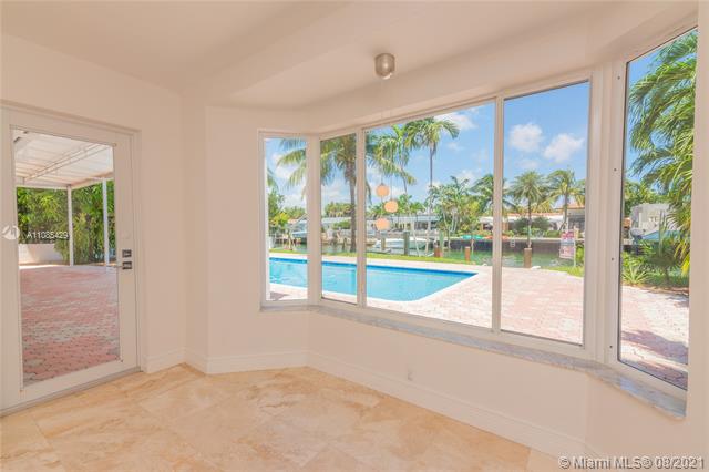 Beautiful updated modern waterfront pool home in a terrific location. This Property is located only 9 houses away from the bay. 75ft on the water with boat dock, boat elevator lift with 4 pilings, travertine marble floors thru-out. Lovely kitchen with granite counter tops- counter island, custom wood cabinets, gas range. Impact windows and doors thru-out and 3 beautiful bathrooms. Enjoy Life in your spacious backyard and pool while watching the parade of boats, jet ski’s, paddle boarders, kayaks, manatees, fish, dolphins and more going up and down the waterway. Only 30 seconds to the Intracoastal and 8 minutes to Haulover inlet. (Garage or storage room for your toys). So much more to see in this lovely one story home.