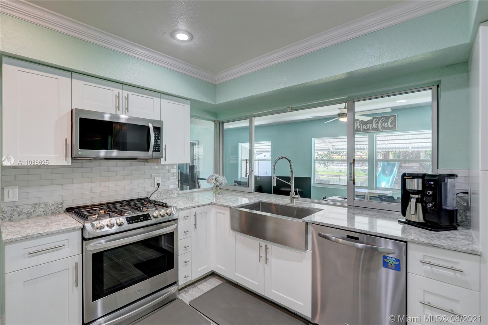 Fantastic opportunity to own a fully remodeled 2 bed 2 bath home in the no HOA community, Sunrise Golf Village! This home has stunning curb appeal w/ it's welcoming front porch featuring stunning grey wood like tile that seamlessly pours into & throughout the home. Oversized living spaces & bedrooms make this home perfect for any buyer! Kitchen & bathrooms have all been beautifully remodeled w/ gorgeous finishes. Kitchen features white shaker cabinets, stainless steel appliances, farmhouse sink, crown molding & LED high hat lighting. Large sunroom that gives access to the beautiful backyard w/ room for a pool overlooking the canal. All plumbing replaced to PVC. Home also has full hurricane protection on all windows w/ shutters & hurricane impact windows in the front of the home.