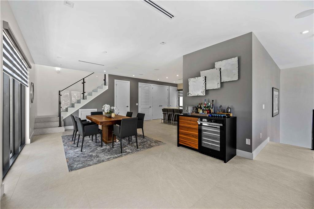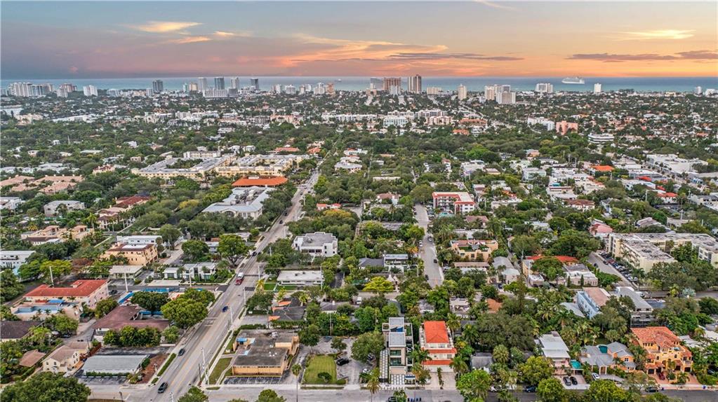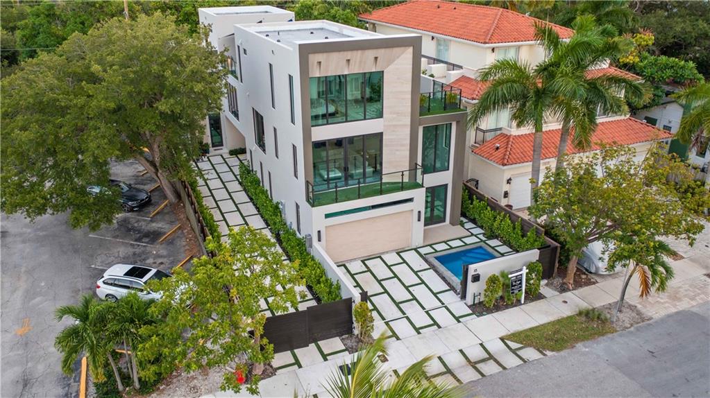 Instant Gratification! A ready to move into new 2021 Las Olas neighborhood pool home. This house is cool, modern and light filled with many technology and design upgrades. Two story foyer, main floor living, dining kitchen with breakfast island, powder room and laundry. Walls of glass provide dramatic city skyline views. The living room opens to an open balcony. The top floor is dedicated to the primary suite, and accesses a roof level terrace with gas grill and more fabulous views. All three levels are served by elevator. Gated drive, a splash pool and two car garage (over 10 ft height) has epoxy pebble flooring and slat wall storage system. An electric outlet is in place for EV charging. [Information is from 3rd party sources including BCPA and is believed accurate but not warranted].