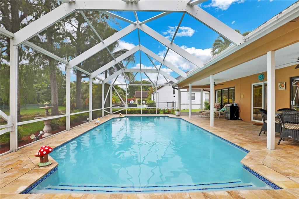 Waterfront corner lot home on over 1/4 acre in RED HOT Ramblewood. Walking distance from Countrywood Park! Large paver brick circular driveway & extra side driveway for TONS OF PARKING! Featuring an updated kitchen with granite counters and breakfast area, and an open floor plan w/ built-in bar - great for entertaining! Split bedroom plan. Oversized master bedroom features XL walk-in closet. Updated master bathroom features dual sinks w/ built-in storage, beautifully updated shower w/ frameless shower door, and private commode leading out to the pool. Guest bedrooms are all generously sized w/ full closets & laminate wood floors - NO CARPET! Backyard and screened-in pool has been beautifully redone with new travertine pavers overlooking the canal view. Don't miss this one!