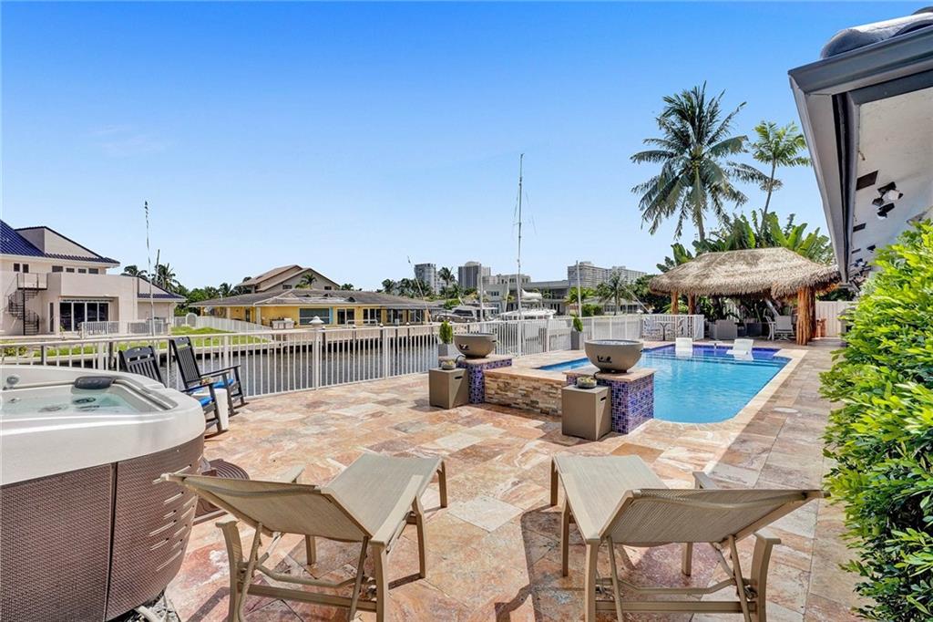 South Florida living at its best! A boater's paradise in the gated community of Bermuda Riviera off of A1A. Home is located on a quite cul-de-sac, one home in from the intracoastal waterway. 100 foot dock on deep water frontage with boat lift. Brand New tiki hut, newer jacuzzi, resurfaced heated salt water pool with new cascading water fall and beach area. Impact windows and doors. New landscaping and stone work around home. New rain gutters and automatic organic mosquito control system. Bosch kitchen appliances. Highly desirable Bayview Elementary district. Measurements believed to be accurate based on public records but should be verified by buyer.