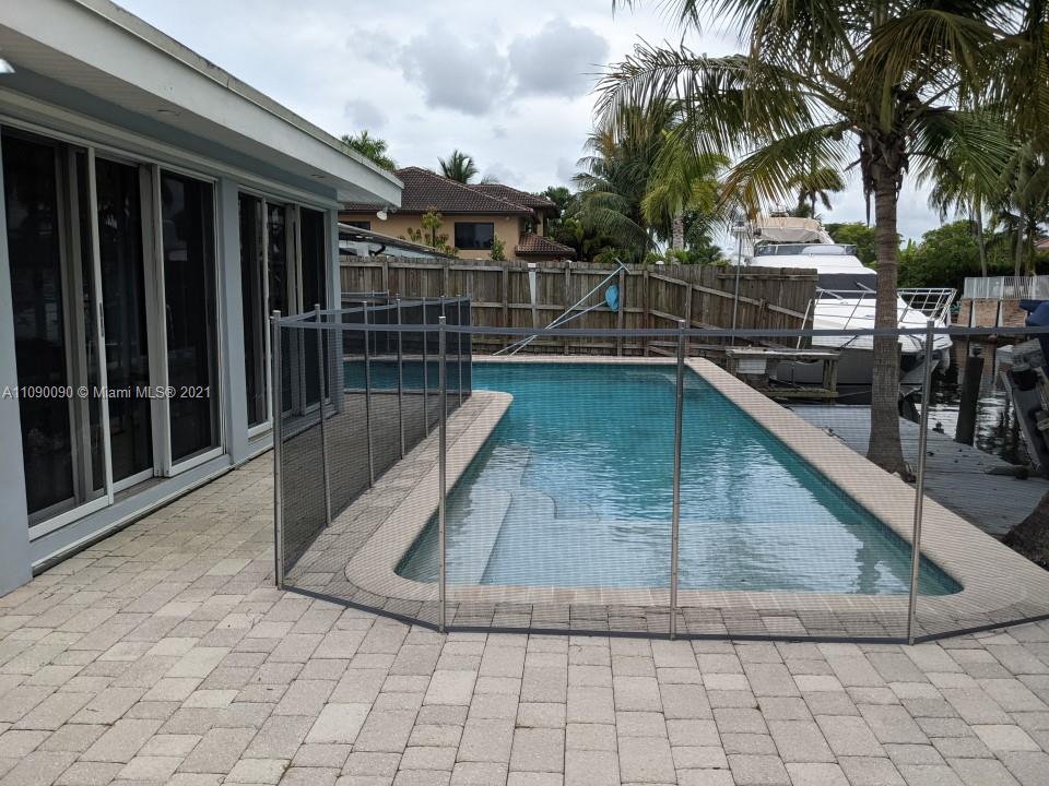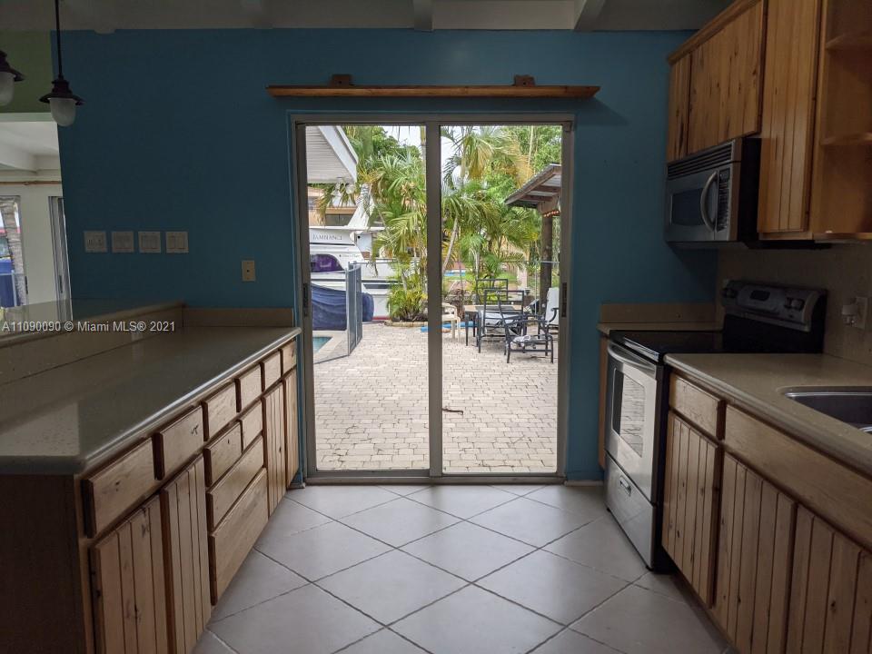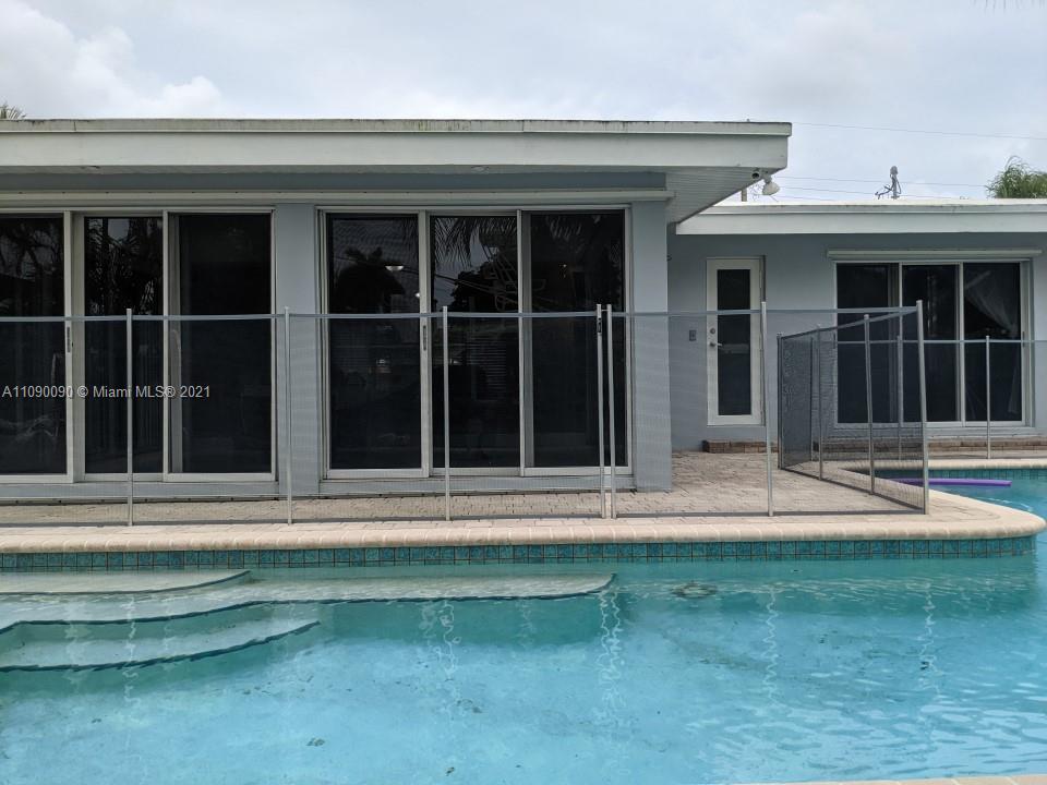 No Fixed bridges. private dock. Beautiful 3 bedroom, 2 bathroom, 1 car garage Move In ready waterfront single family home in Lauderdale Isles with no association. Bonus Sunroom overlooking canal has several sliding doors for easy access to outside. 65 Foot dock with boat lift with 15,000 pound capacity. Large cabana style bathroom that opens up to saltwater, heated pool. Tiki bar with outdoor sink and space for refrigerator for outdoor entertaining. Also has Outdoor shower. Kitchen with freezerless refrigerator and matching stand alone freezer. Imported granite from Italy, stainless steel appliances. 15 minute boat ride to Las Olas. 15 minute car drive to Ft Lauderdale Airport.