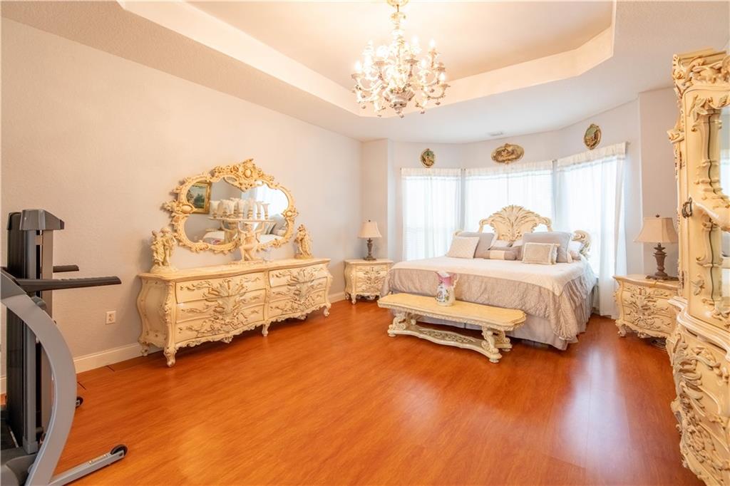 Don't miss out on this elegant home featuring 5 bedrooms + loft and 5 bathrooms. The house has 3 master bedrooms with the main master bedroom on the first floor, along with another mini suite with its own private bathroom. The third master bedroom is on the second floor. Upgraded gourmet kitchen with center island, new appliances and quartz countertops. New porcelain floors on the main level and marble on the stairs and hallway of the second floor, laminate floors in all the bedrooms, plus remodeled bathrooms. Enjoy the privacy of a beautiful fenced backyard with pool and fruit trees. The community offers a spectacular 5-star clubhouse with pool, fitness center, tennis, basketball courts, activities for children, and much more.