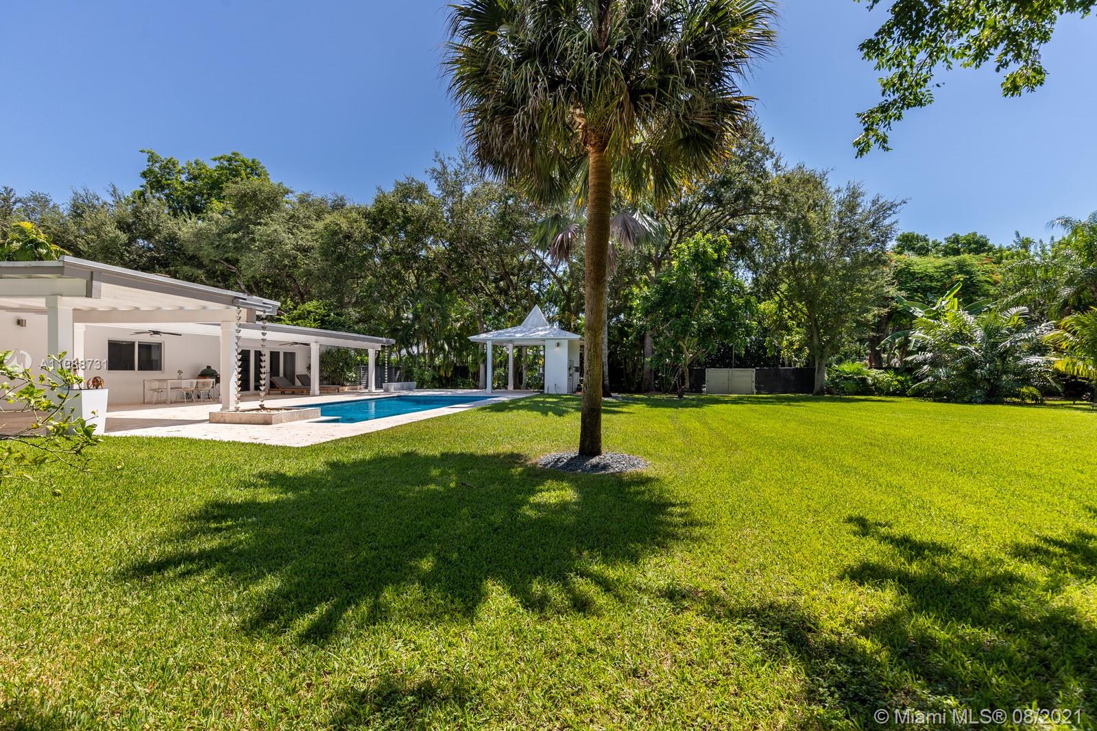 This is not your cookie-cutter Pinecrest home! A beautifully-renovated, 4 BD/4.5 BA, single-story home situated on a gated, lush corner lot on one of Pinecrest’s most idyllic streets. With more than 3,800 ADJ SF, this home offers ample living spaces with an open chef’s kitchen, generous patio + large family room/den that is perfect for a playroom, home office or flex space, complete with a wood-burning fireplace. While this home has all the modern updates (including smart home systems, renovated bathrooms, impact windows, a brand new hurricane-rated garage door, all Thermador appliances, newly-resurfaced saltwater pool, etc.), it also pays homage to the home’s original charm with stunning terrazzo floors in the primary bedroom. This home is completely turnkey + ready for new owners.