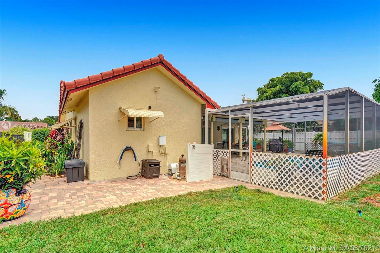 Gorgeous updated pool home in Coral Springs!!! Meticulously maintained! Fabulous updated kitchen with quartz countertops and breakfast bar countertop overlooking the Family room, diningroom-living room combination, large owners suite with spacious closets, cabana bath, dual sinks, shower, elegant spare bathroom with oval free standing tub, separate laundry room with washer/dryer, gorgeous unique decorative ceilings, tile thought all living areas, hurricane impact windows thoughtout, updated electrical panel, Newer AC unit, paved driveway, walkway and back patio, screened in pool and oversized patio, fenced yard! Nothing to do except move right in!