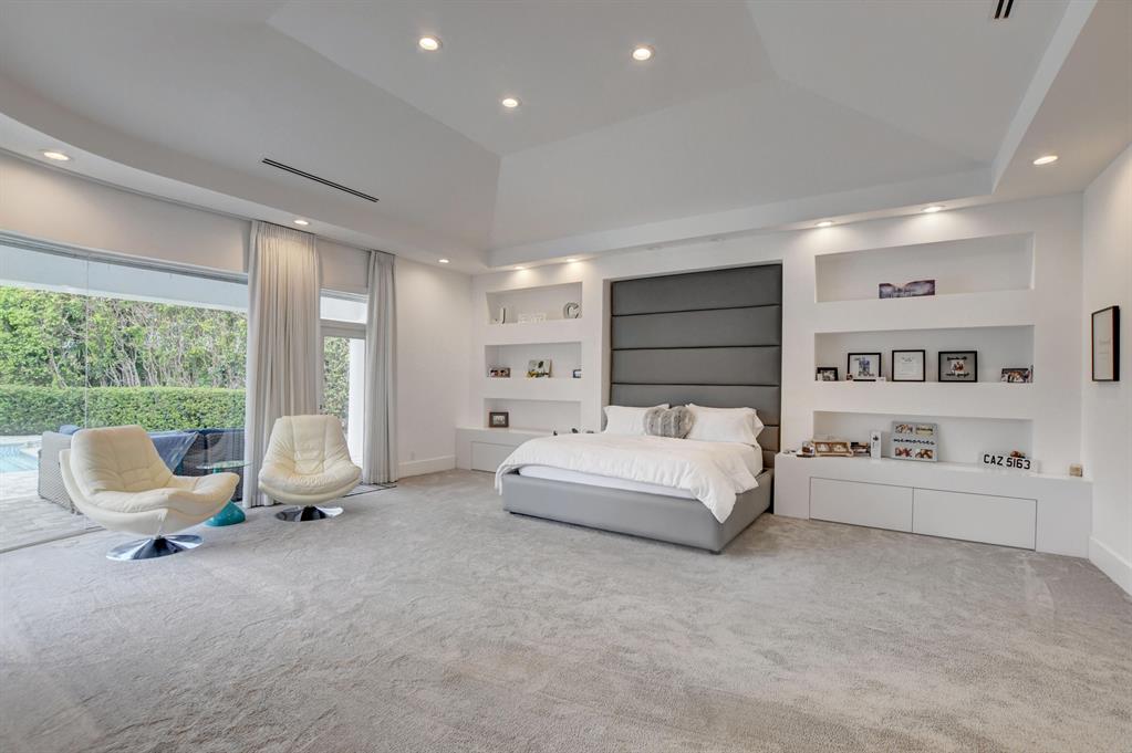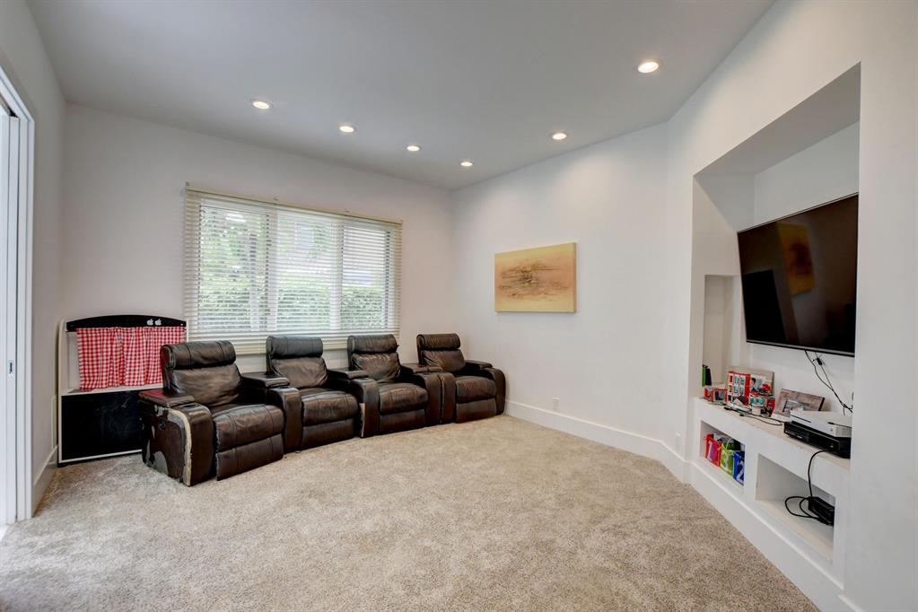 Situated within the highly coveted subdivision of Tanglewood, this renovated, 1-story estate offers a multitude of modern luxuries. It features over half an acre of landscaped grounds, volume ceilings and a plethora of upgrades. Once inside, the foyer welcomes you with a picturesque view of the pool and surrounding landscape. This space offers a dry bar, perfect for showcasing your signature cocktails while entertaining family & friends, along with the adjacent formal dining room. To your right the home office is reminiscent of a quaint French library with a custom built-in bookshelves & rolling ladder. A space that will satisfy any book lover.