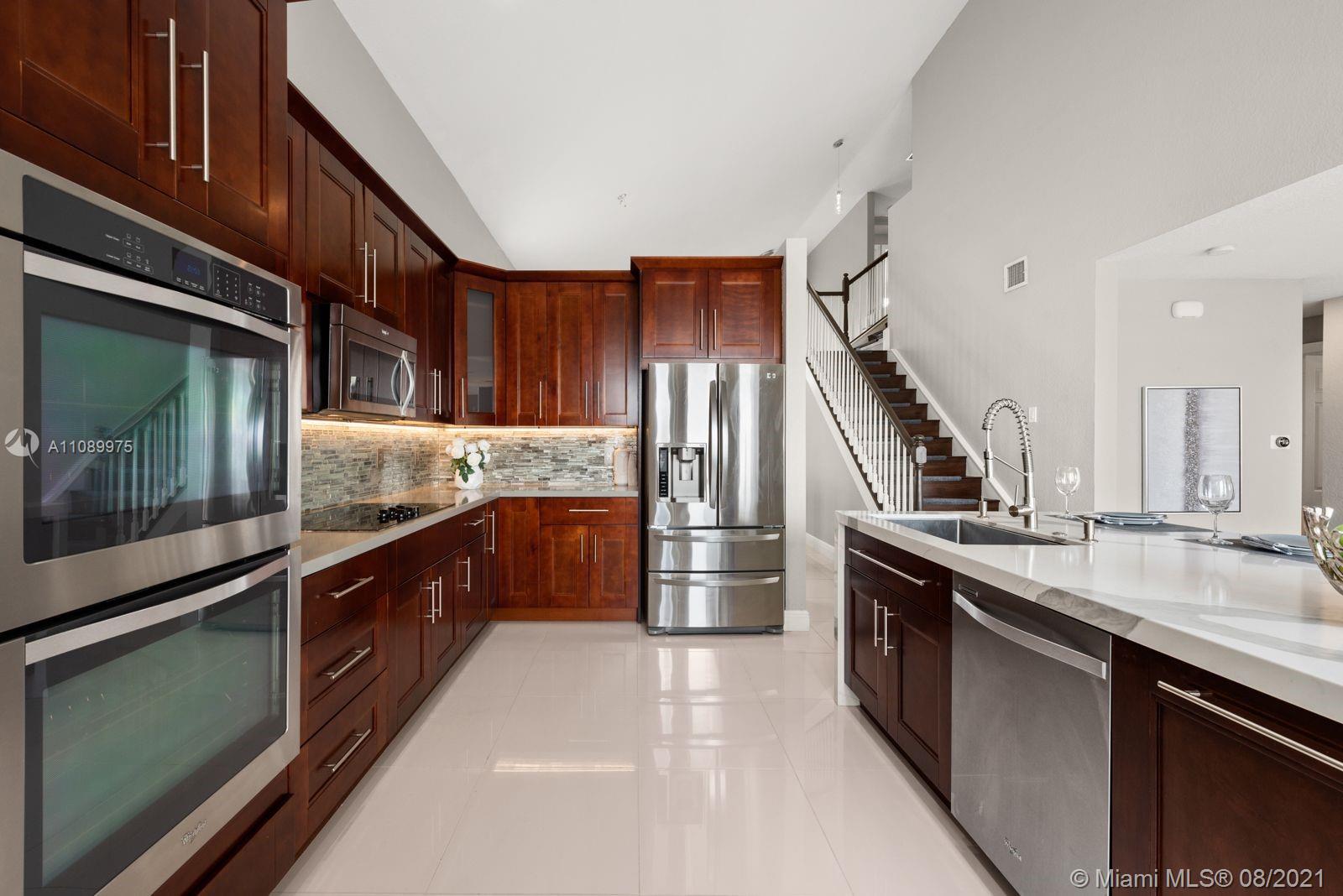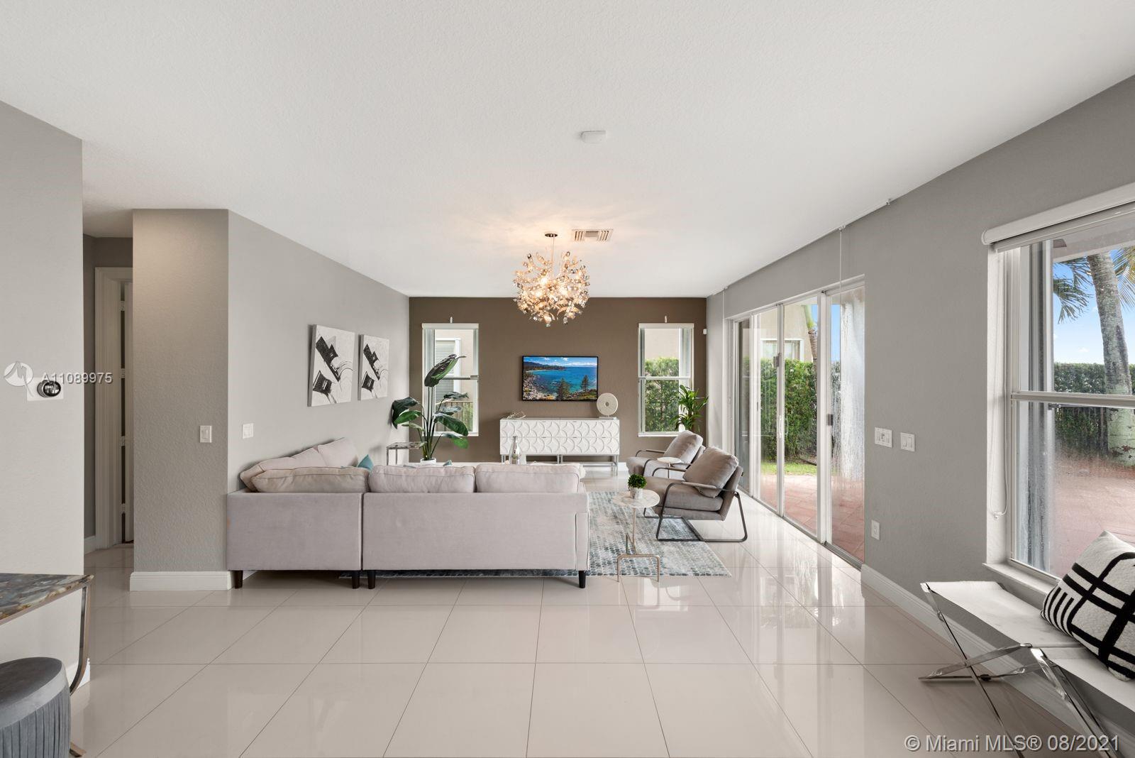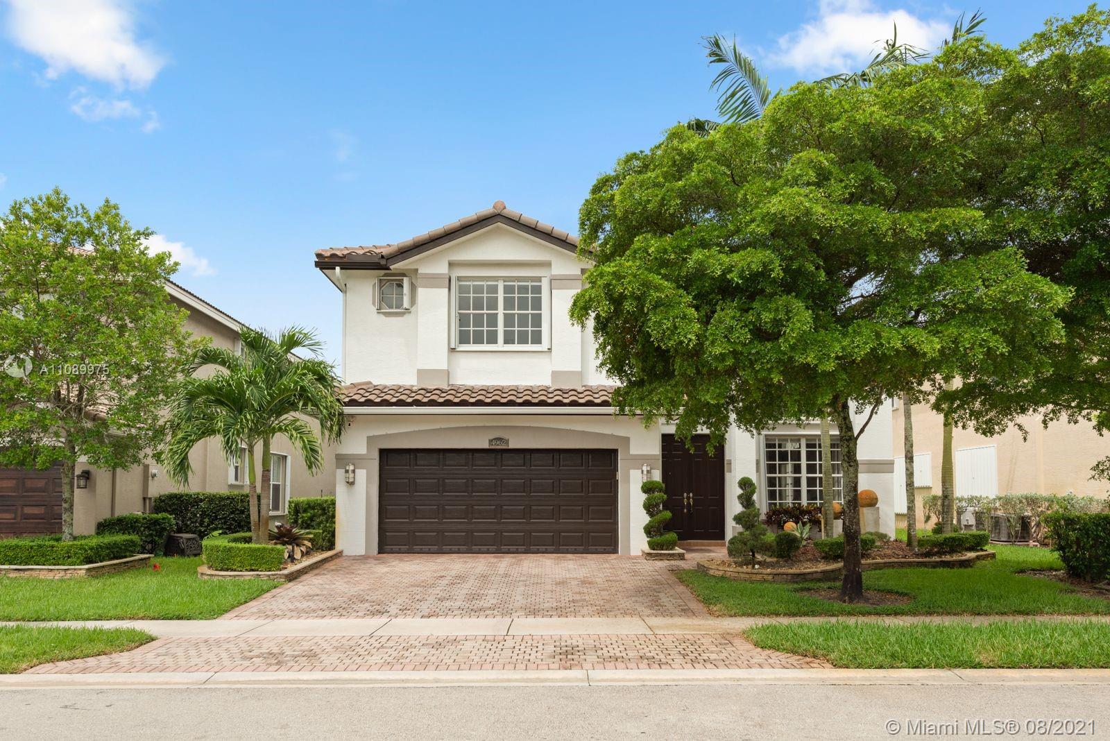 Absolutely stunning wide lake views from this desirable Sunset Falls pool home. Enter into the formal living room with breathtaking high ceilings allowing in abundant natural light. Elevated dining area leading into the beautifully remodeled kitchen with an oversized island & quartz countertops. Enjoy endless pool & lake views from the large family room that leads out to the patio where you can enjoy one of a kind sunsets on one of the largest lakes in Miramar. The master has a sitting area, bathroom with huge walk in shower & custom closets. Huge master bedroom balcony perfect for morning coffee with a water view! Jack & Jill upstairs bedrooms & a bedroom with bathroom & half bath downstairs make for a perfect layout. Gated community with a pool, exercise room, tennis, basketball & parks