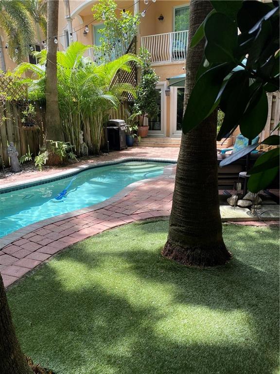 Downtown living at its finest! Beautiful tri-level townhome just steps away from the New River. Boasting over 3200 sq. ft. with 4 bedrooms, 3 1/2 baths, loft, private elevator, and 2 car garage- all with NO HOA. 3rd floor wrap around terrace overlooks a private tropical oasis featuring a gas heated saltwater pool with an expansive patio area. The 2 story foyer entrance with a 1/2 bath and storage room lead to a custom kitchen with a 5 burner gas cooktop, quartz counter tops, and SS appliances that opens to a spacious dining and living area. The 2nd level features the primary suite with spa-like bath, dual walk-in closets and balcony, another en suite BR w/extra closet space and balcony. loft/office and laundry area. 2 add'tl BR's on 3rd fl., 3rd full bath, and kitchenette for
