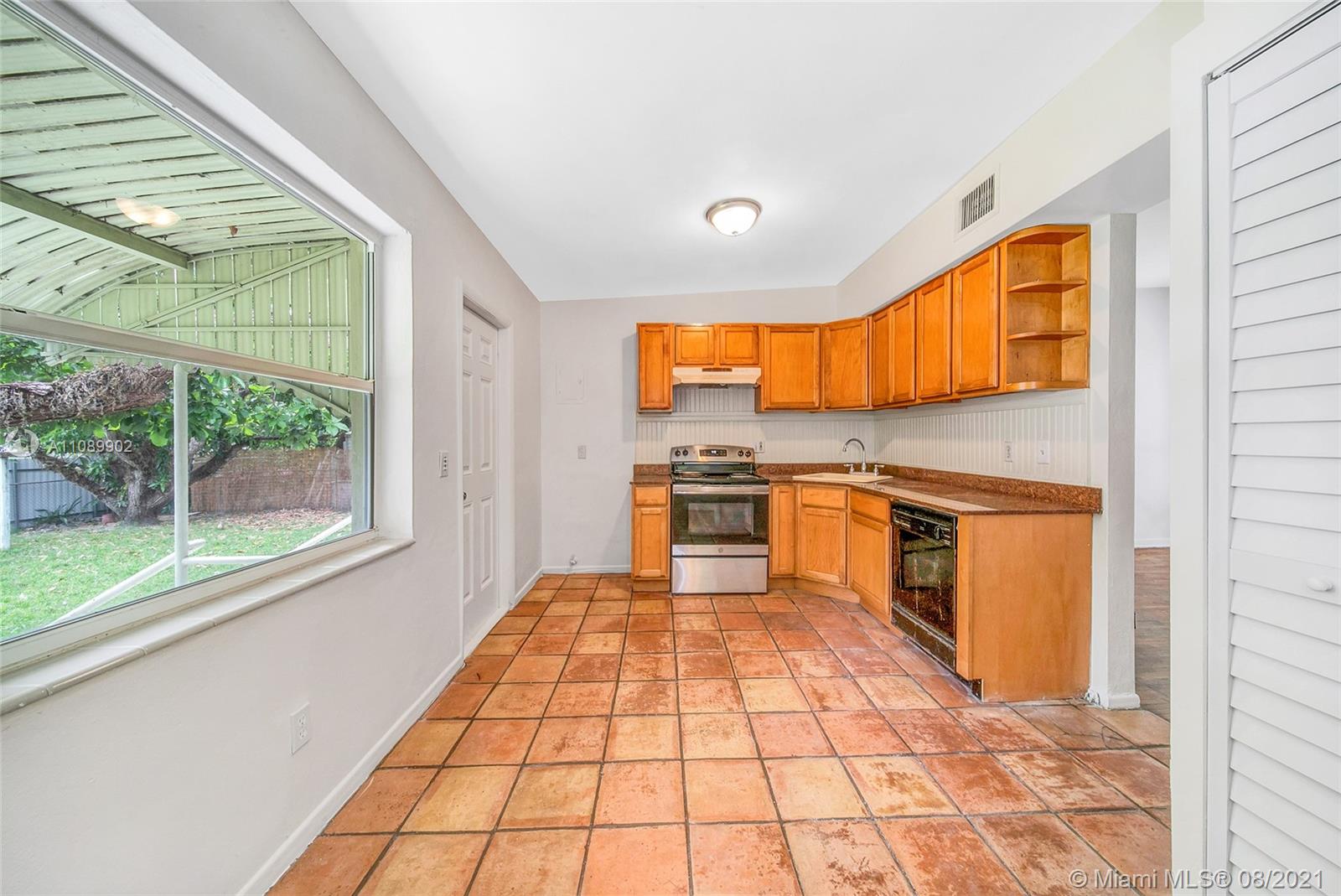 On a charming cul-de-sac just behind Enchanted Forest, this 2 bedroom/ 2 bathroom + den is the perfect house to make your dream home. The house sits on a large 8,023 sqft lot and is surrounded by beautiful fruit trees and tropical plants. The house features a great layout with plenty of light, original hardwood floor, a well maintained flat roof, hurricane shutters & panels and a brand new AC unit. The very large back yard offers ample room for a pool. The attached 1-car garage will be perfect to protect your vehicle, for additional storage or to be converted.