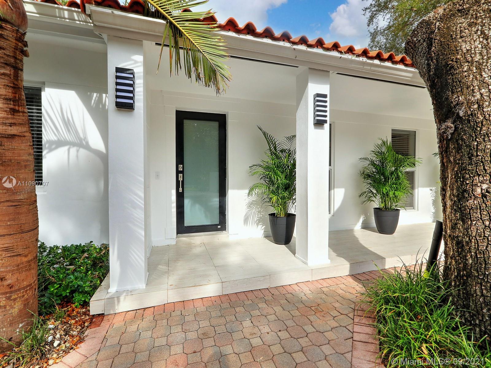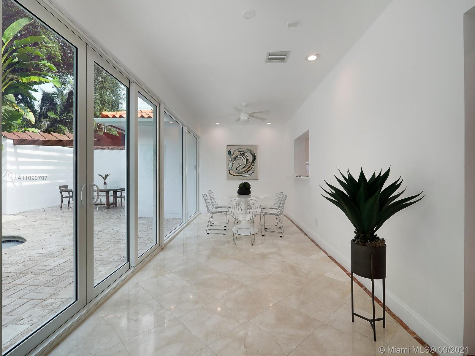 Let the sun shine in! Fabulous home tucked in and gated for privacy, in prime South Gables location, across multimillion dollar waterfront mansions. The foyer greets you to light filled living spaces featuring formal living, formal dining, completely remodeled kitchen that opens to a large family room. Many special features, but the extra large sun room facing the pool area and very deep yard, will captivate any visitor, inviting for entertaining. Spacious 5 bedrooms and 5 baths with a split plan, 2/3- 3/2. Plenty of options for home office spaces. Possible 6th bedroom for staff quarters. All impact, manicured yard, it is a true delight to show. Square footage is larger as per appraisal, LA 3,525 TA 4,133 sf Mint and ready to live in