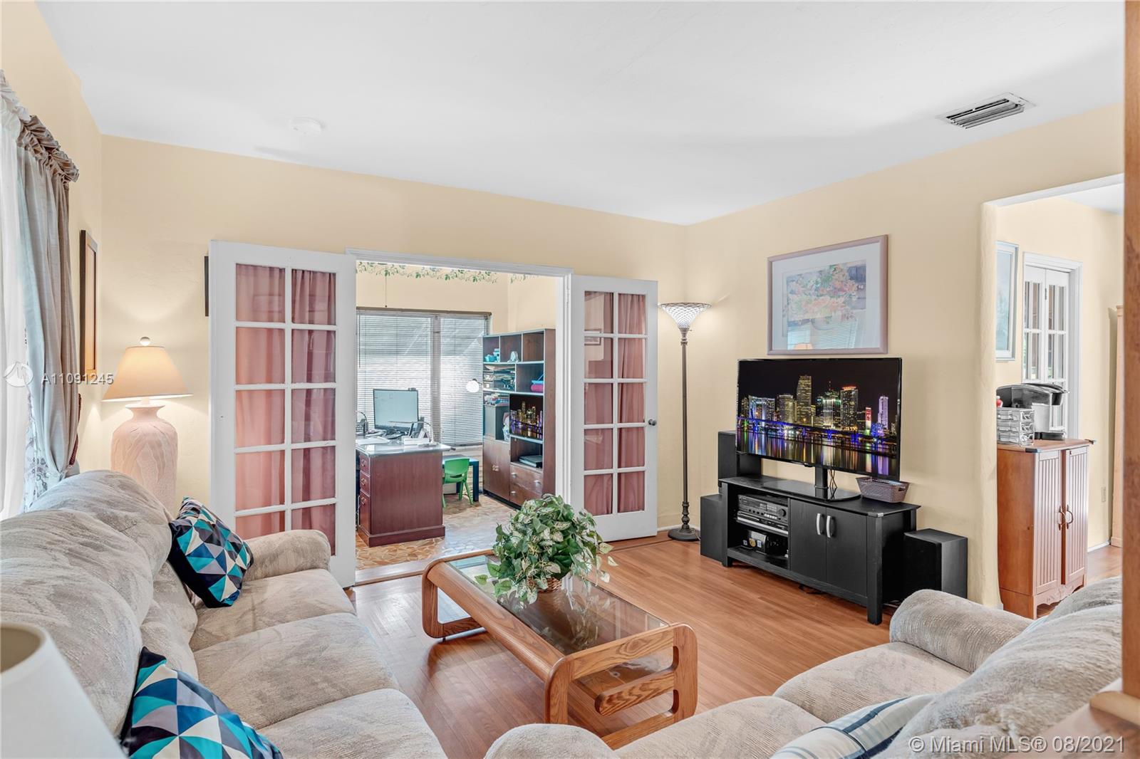 Original & cozy 1942 Miami Shores - Corner Lot Home - This unique home features 2 bedrooms +den, 1 bathroom, and 1 car garage. It has a galley style kitchen overlooking a spacious rear yard with room to extend or add a pool. Mature trees providing great shade and curb appeal. Beautiful original wood floors throughout with a maple inlay. New central AC unit. This home has so much potential. Ready for a new owner to make it their own. Call today and schedule a private tour.