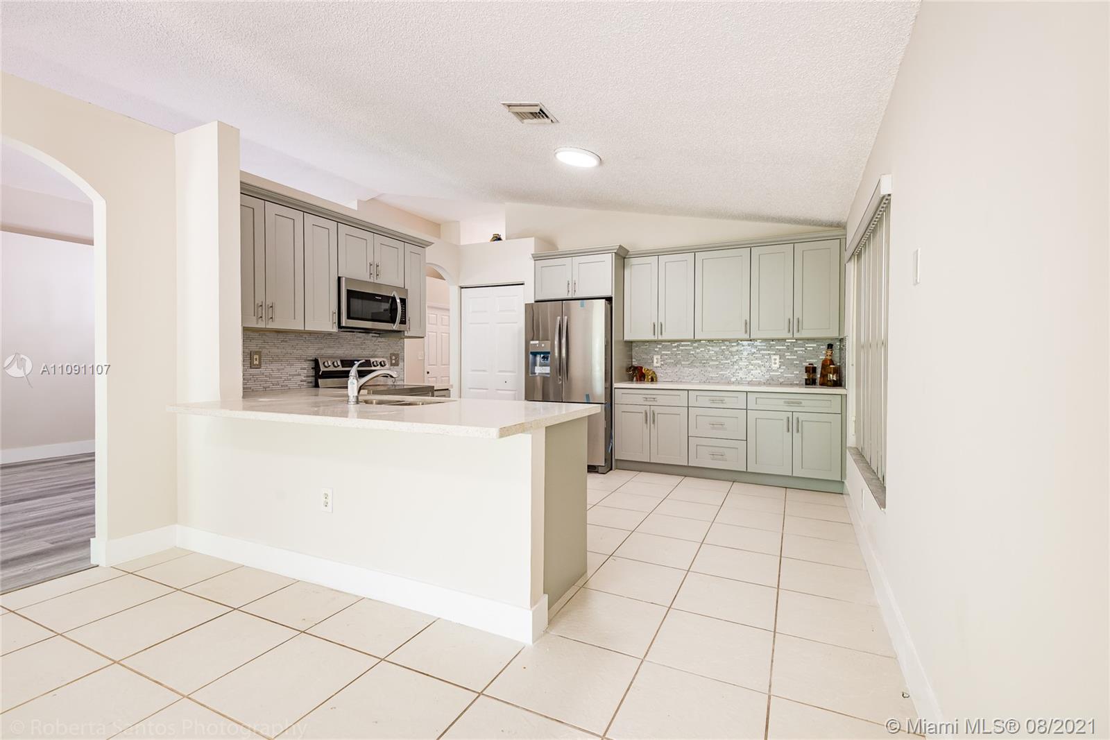 Wow!!! Beautifully, renovated!! Over 70K in renovations !!, Great Opportunity, spectacular One-Story Home, oversize Corner Lot, in west Miramar, Don't miss it. The updated house, 3bedrooms 2 baths, a spectacular remodeled open kitchen with quartz countertops, white cabinets, new stainless steel appliances!!, shutters Family room area, Wood flooring throughout common areas. New Master Bath, Separate Roman Tub & Shower renowned, and renewed the 2dn bathroom, 2 cars garage space. Have vaulted ceilings, Laundry room with newer washer and dryer, fruit trees in the back yard, Centrally and conveniently located, come see easy to show, the mask will be required.