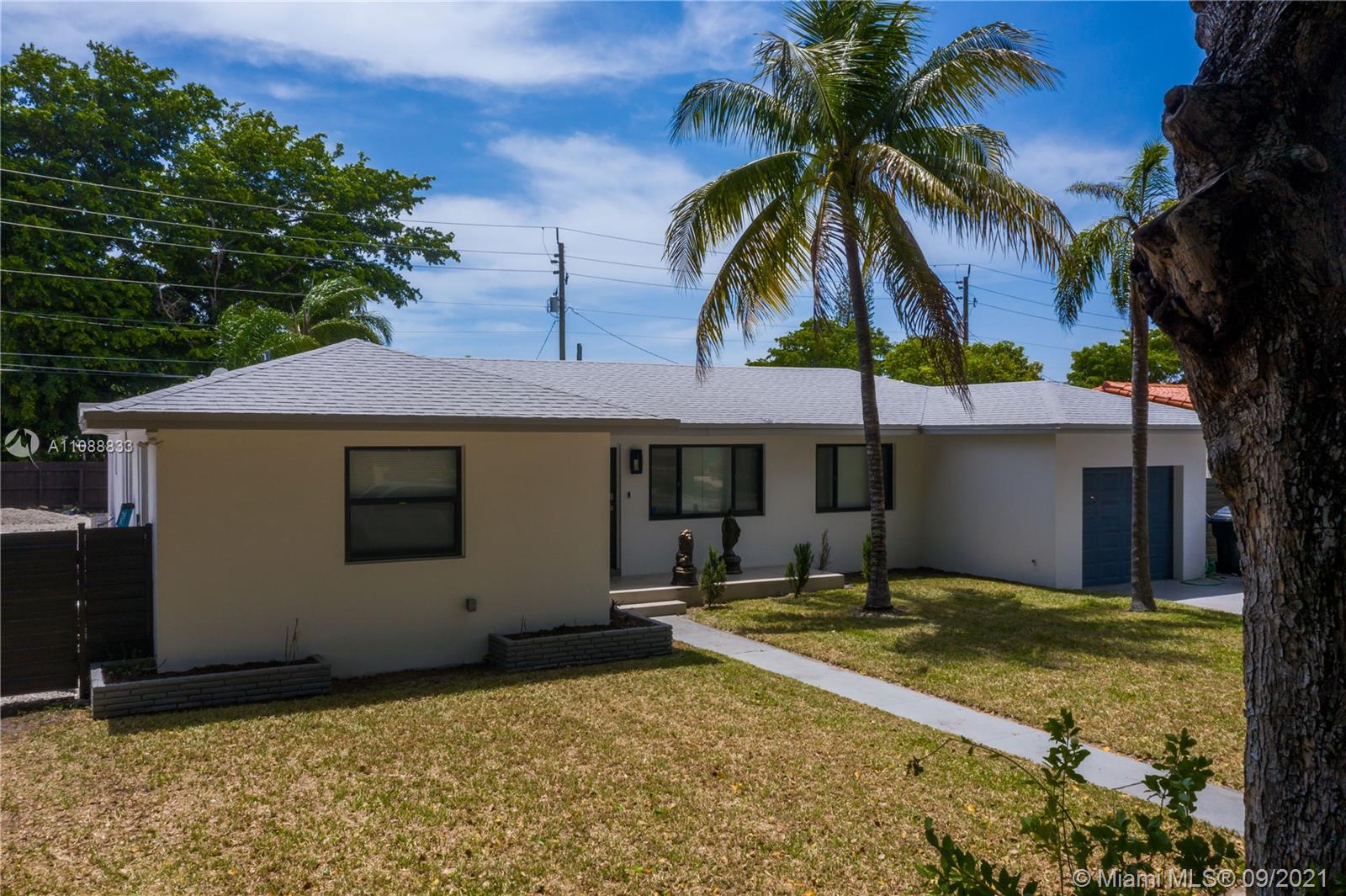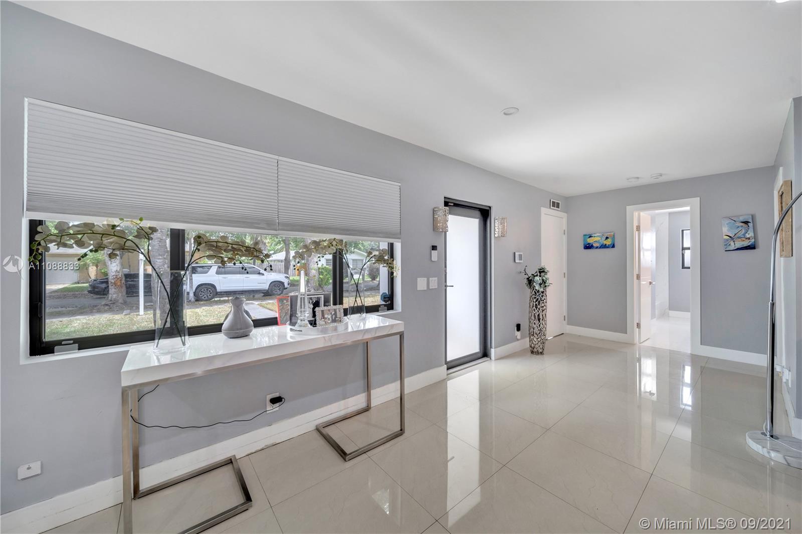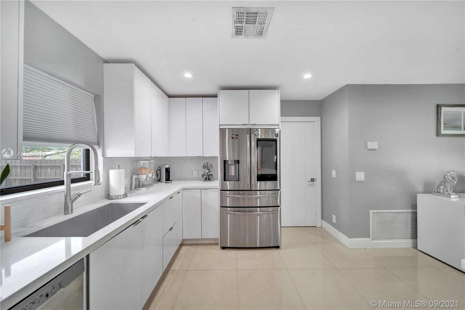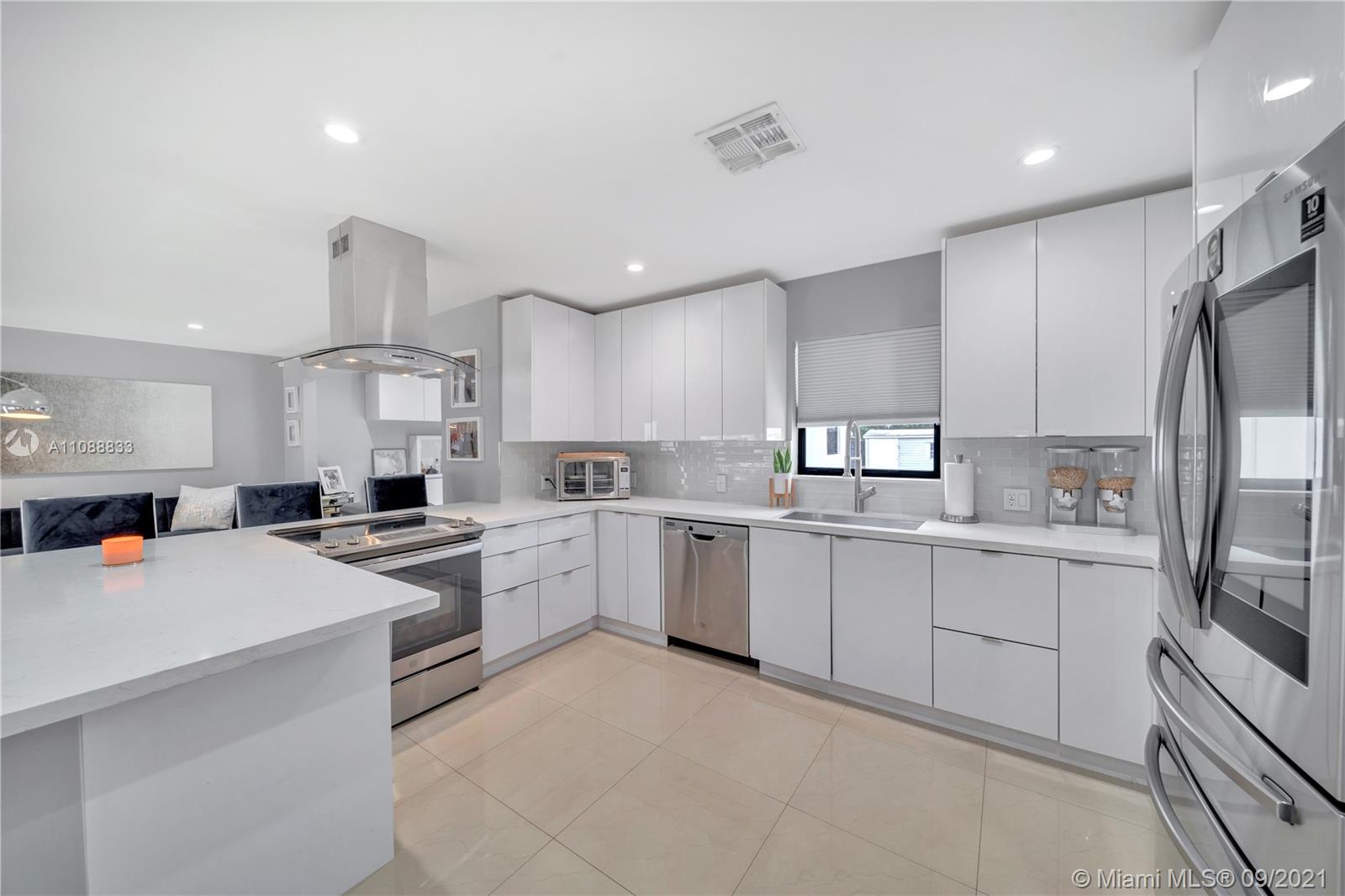 This exquisitely fully remodeled 4 bedroom 3 bath home was done without anything to spare. It features beautiful porcelain tile throughout the house, quartz countertops, ss appliances and an open concept floorplan. Bathrooms feature floating vanities & glass shower doors. It displays a stunning floating bar and fireplace just before leading into the master bedroom. The home has impact windows, roof is about 2 yrs. old, water heaters are less than 1 year old, ac is about 2 yrs. old and has a new insulated duct system, new plumbing & electrical all done with permits. This oversized lot is ready for a pool, RV or boat because there is no HOA. Use this home for your family or short term rentals. Just minutes from the beautiful Hollywood Beach, Gulfstream, & tons of restaurant and shops.