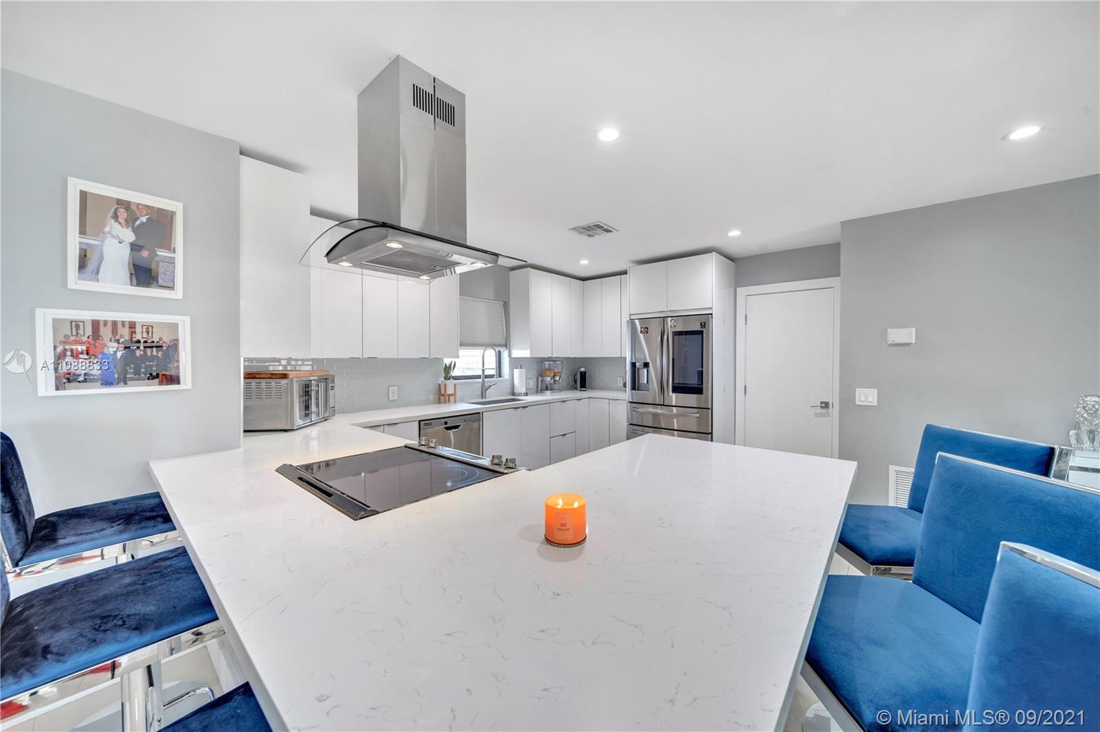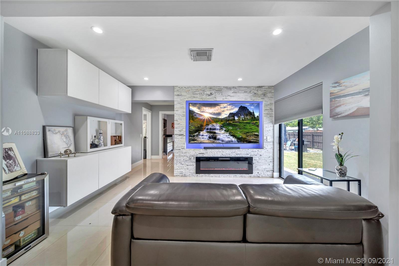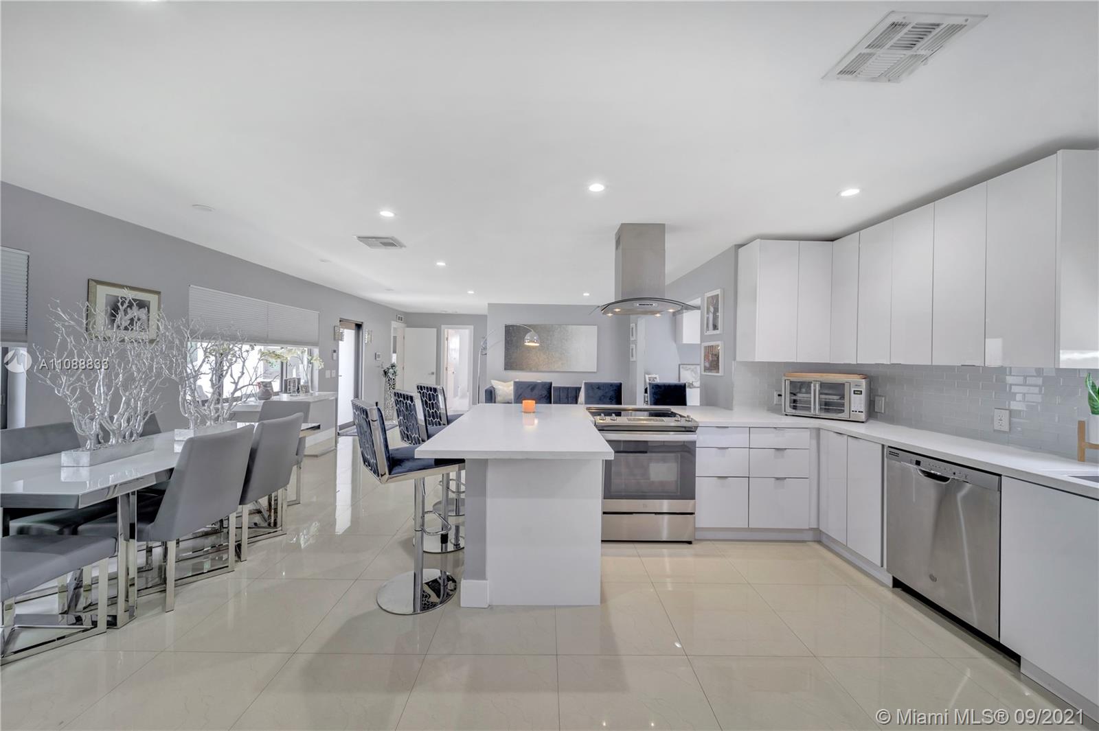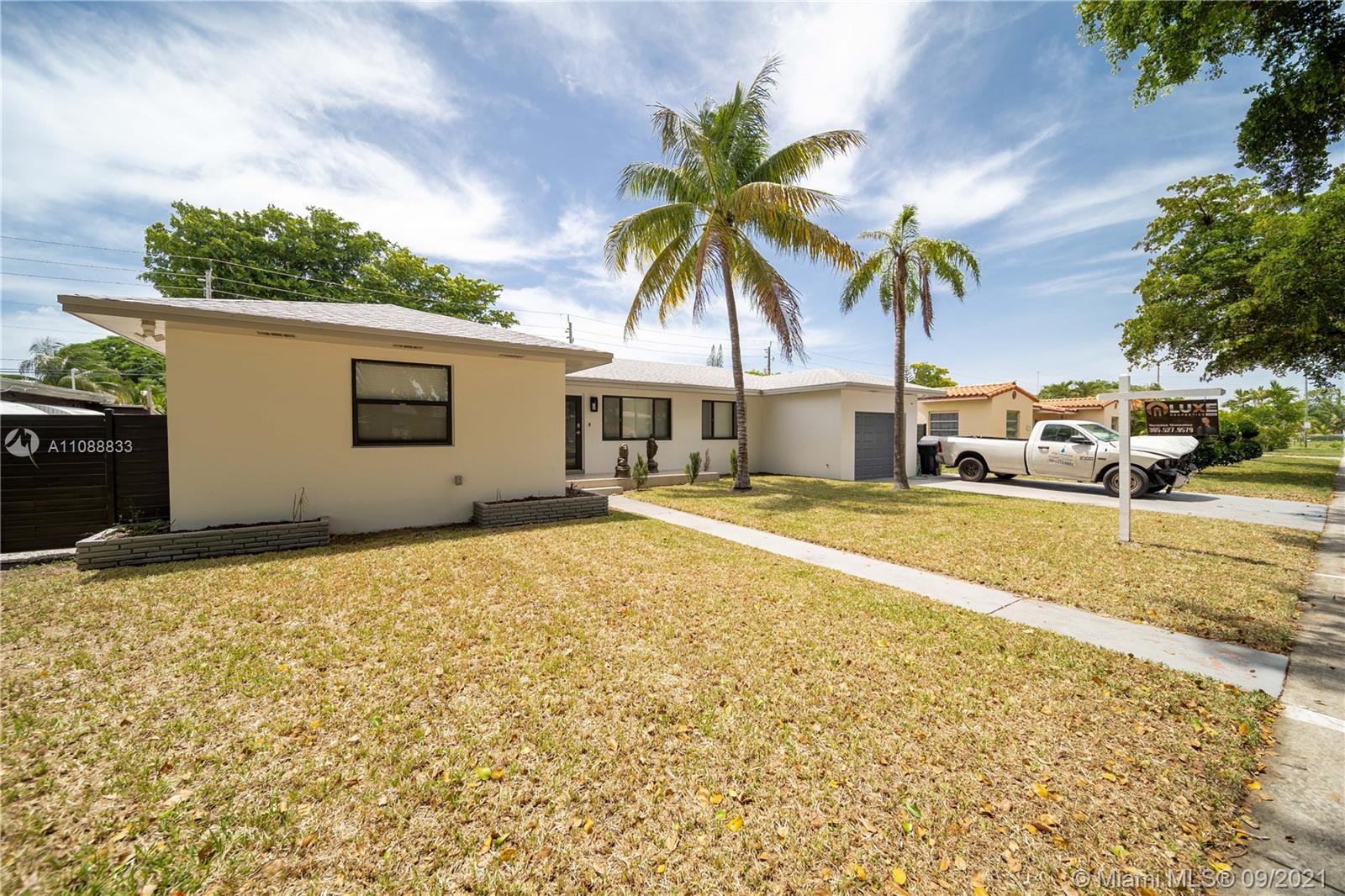 This exquisitely fully remodeled 4 bedroom 3 bath home was done without anything to spare. It features beautiful porcelain tile throughout the house, quartz countertops, ss appliances and an open concept floorplan. Bathrooms feature floating vanities & glass shower doors. It displays a stunning floating bar and fireplace just before leading into the master bedroom. The home has impact windows, roof is about 2 yrs. old, water heaters are less than 1 year old, ac is about 2 yrs. old and has a new insulated duct system, new plumbing & electrical all done with permits. This oversized lot is ready for a pool, RV or boat because there is no HOA. Use this home for your family or short term rentals. Just minutes from the beautiful Hollywood Beach, Gulfstream, & tons of restaurant and shops.