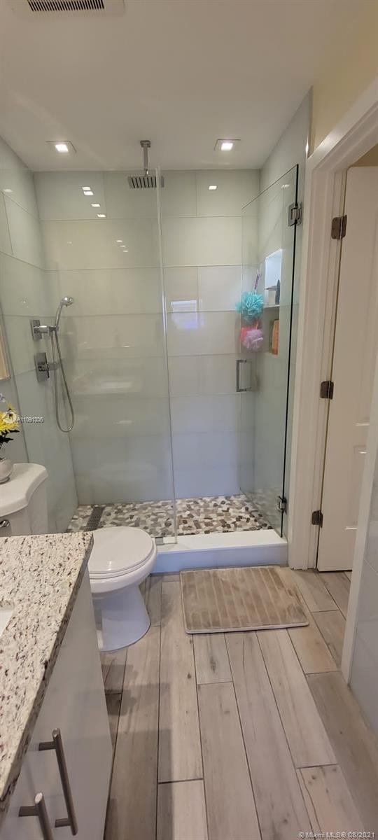 Spectacular and tastefully upgraded property in the heart of Hileah! Property features 2 bedrooms and 1.5 baths. Totally updated kitchen with granite countertops, top of line stainless steel appliances, beautiful cabinetry and touch water faucet. Tile floors with laminate wood look and white baseboard, which is a plus! Crown molding throughout. Tile stairs with stainless steel handrail and glass finish, it looks amazing! Upgraded bathrooms with granite vanities. Shower only bathroom with glass shower tiles! Both bedrooms have built in closets. Additional storage space under stairs. Impact windows and doors. Tankless water heater. Combination door lock stays as well as security cameras. Close to major highways, airport, shopping and the beaches! This is a MUST SEE! It will not last!