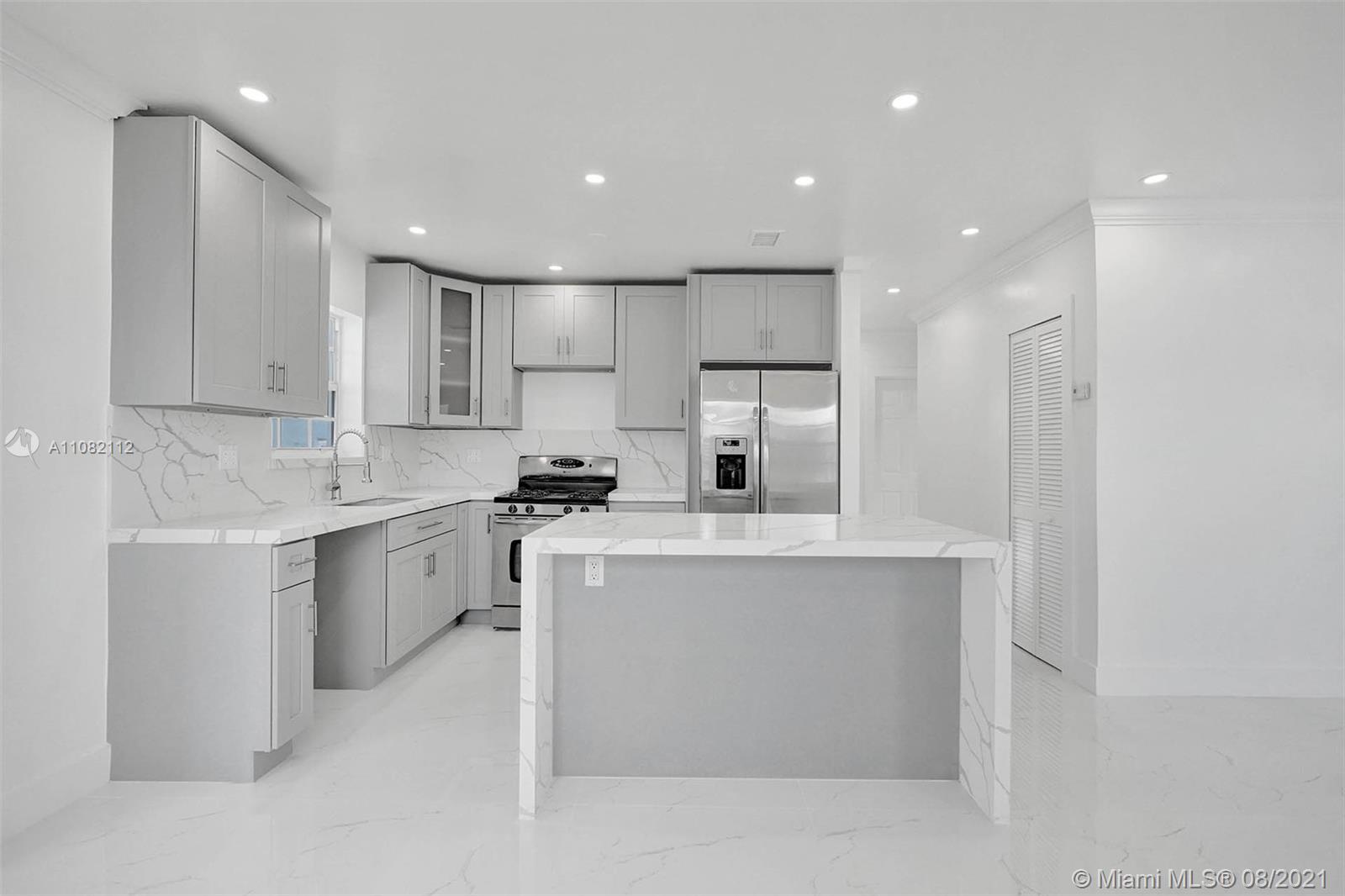 Gorgeous remodeled 3 bed, 1 bath home in East Hialeah. Walking distance to North Hialeah Elementary School. Pristine block where every neighbor has pride of ownership. This home is gorgeous, every detail has been meticulously thought out. Large stone tiles throughout the home with stylish grey cabinets and cultured stone countertops and backsplash. Recessed led lighting throughout the home and bedrooms. Fresh paint inside and out with custom trims on the keystone accents. Fresh white drain-field rock has been added with a membrane to expand the parking and provide a fresh modern look with little to no maintenance. Plenty of parking for a large boat. 10,000 sq ft lot, room for a pool and much more! This home is solid and has been well taken care of over the years. This home will not last.