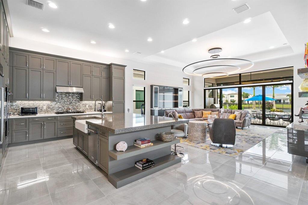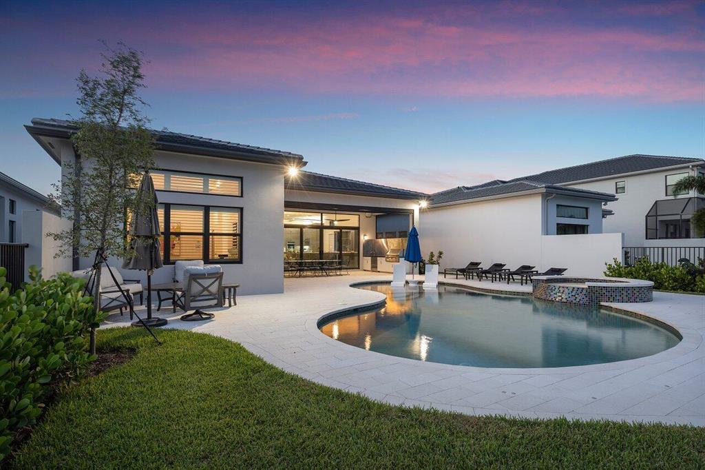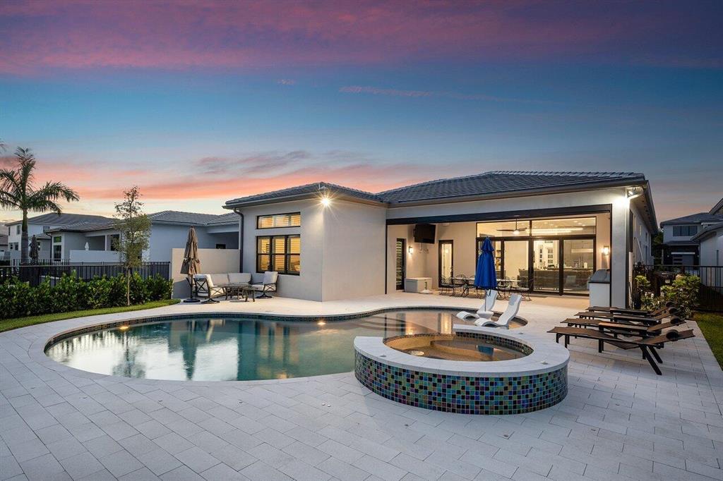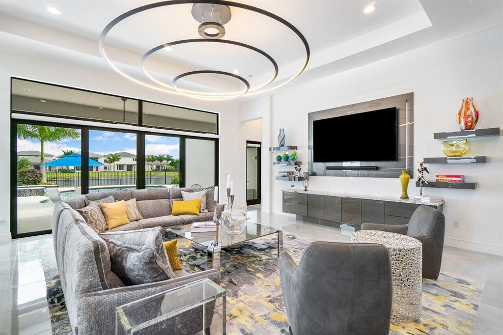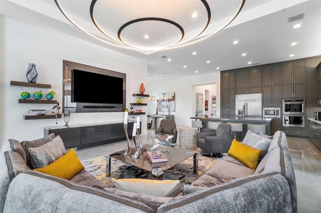 Stunning one-story, fully upgraded home in the highly desired Boca Bridges. 3 bedroom plus den! This home features a long list of upgraded features and was meticulously designed to be a stand out in the community. The home owners sparred no expense in design. The contemporary home features soaring 12 1/2 foot coffered ceilings with gorgeous tile and wood flooring. The living area features a custom entertainment center and built in bar area with Quartz countertops. Additionally, the home has custom, motorized blinds throughout. The bedrooms all have ensuite bathrooms that feature upgraded tile, vanities, lighting, and mirrors.Custom, European light fixtures throughout the home. The backyard features pool, spa and summer kitchen. Electronics included.
