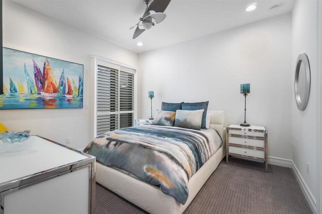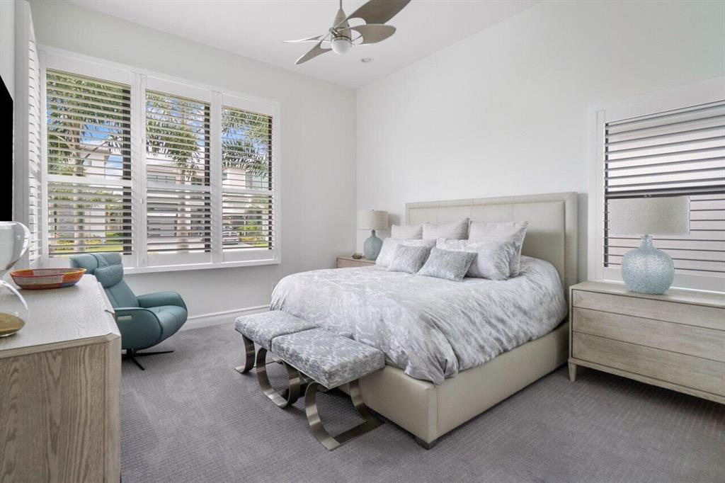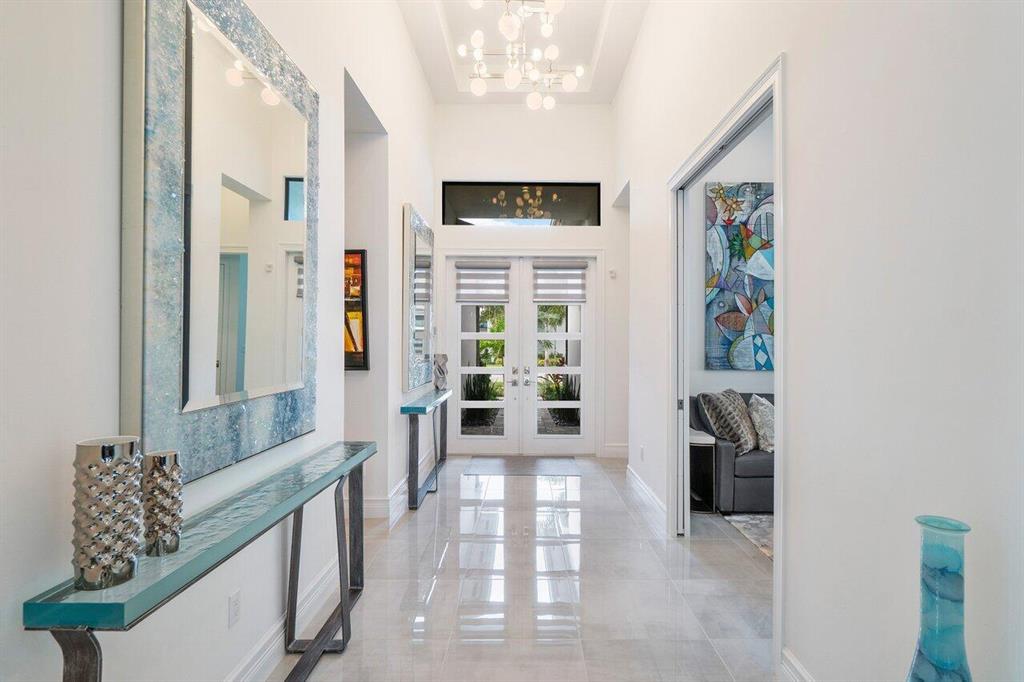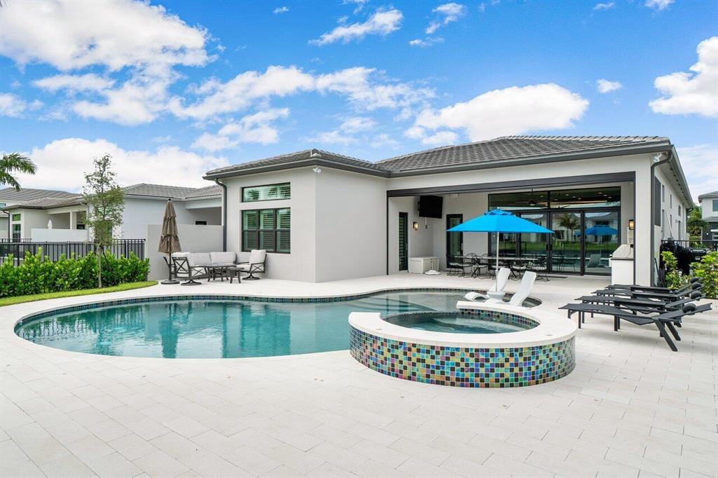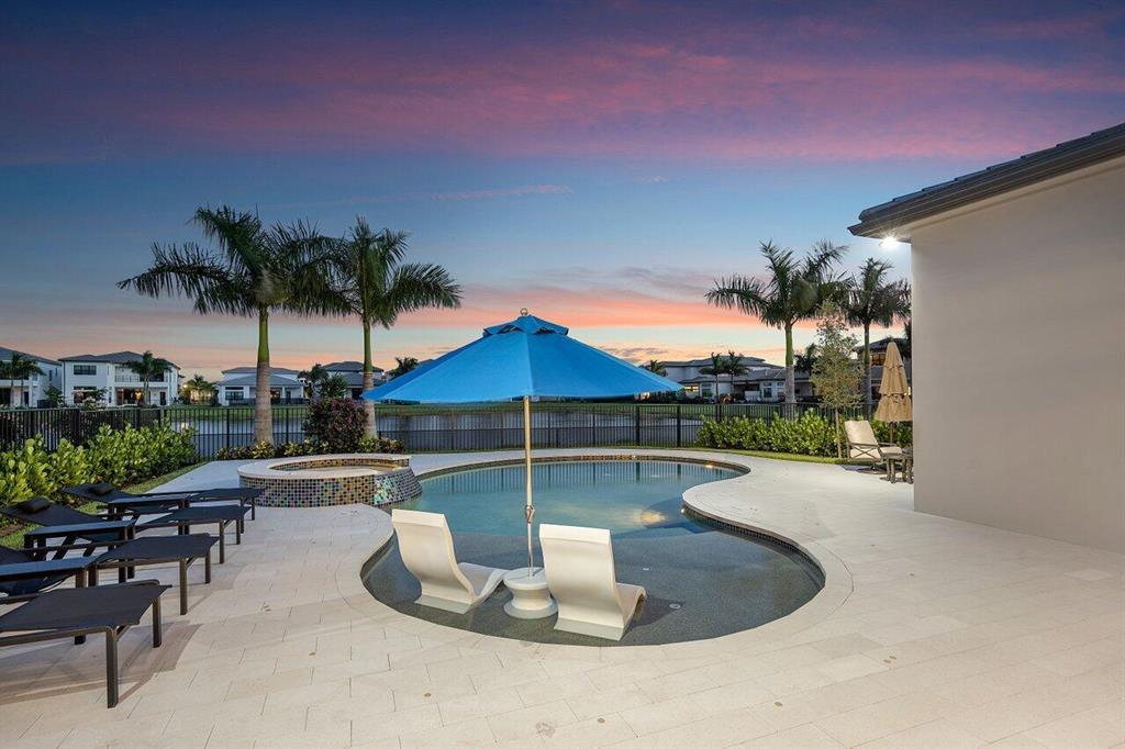 Stunning one-story, fully upgraded home in the highly desired Boca Bridges. 3 bedroom plus den! This home features a long list of upgraded features and was meticulously designed to be a stand out in the community. The home owners sparred no expense in design. The contemporary home features soaring 12 1/2 foot coffered ceilings with gorgeous tile and wood flooring. The living area features a custom entertainment center and built in bar area with Quartz countertops. Additionally, the home has custom, motorized blinds throughout. The bedrooms all have ensuite bathrooms that feature upgraded tile, vanities, lighting, and mirrors.Custom, European light fixtures throughout the home. The backyard features pool, spa and summer kitchen. Electronics included.
