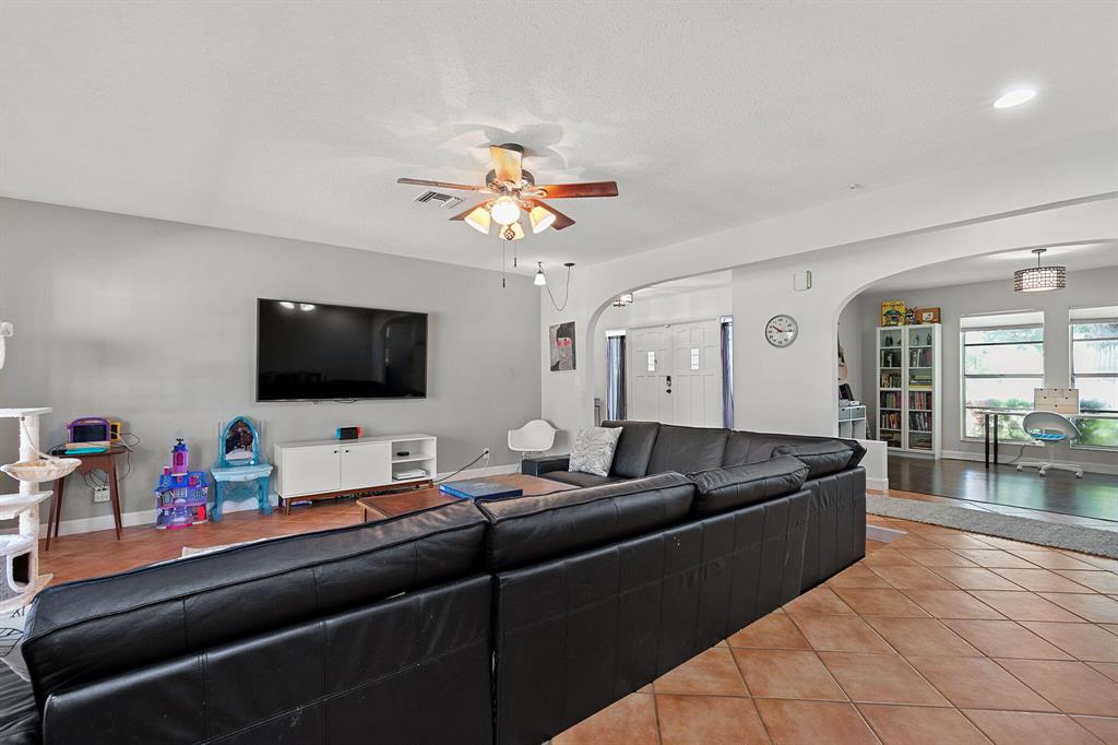 Location, Location, Location. Yes. This home has it. This spacious home has a split bedroom layout with the owner's suite on the left and the other bedrooms split up on the right side. The focal point of the home; the kitchen and family living room are the center of attention in this amazing home with its incredible layout. The Resort style backyard offers 3 separate areas for entertaining or family enjoyment. The large pool with water feature is to your left, the screened in area, one of the focal points of the backyard has a bar and a small waterfall. The screened area offers both covered and sun exposed areas for enjoyment. As well, there is a separate grassy area for throwing a baseball or could be set up for a bocci ball court, shuffle board or anything one could imagine in