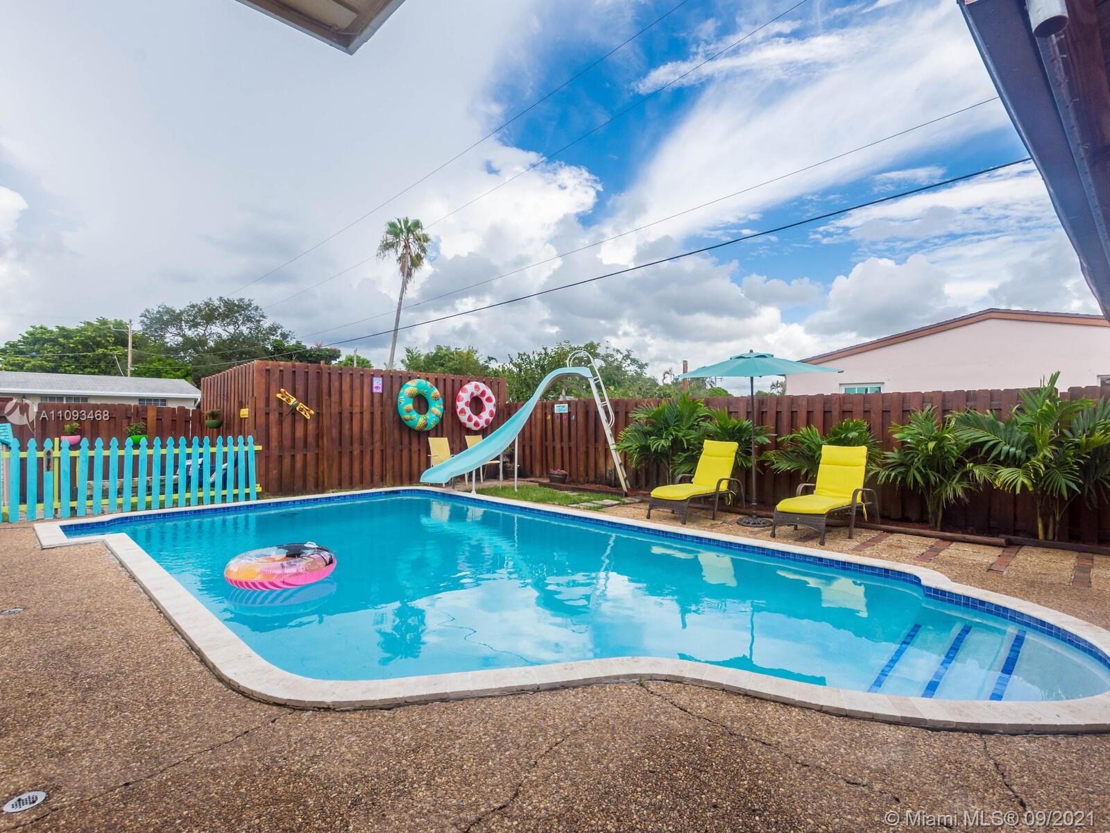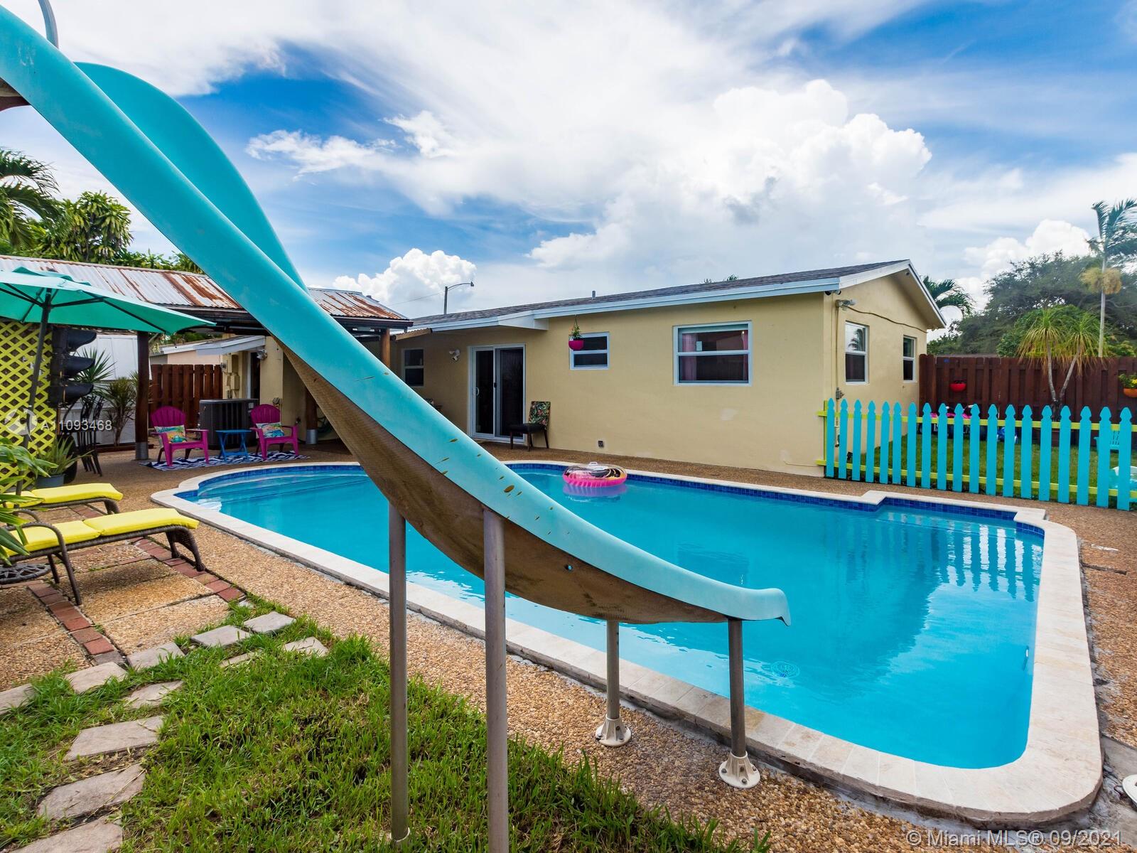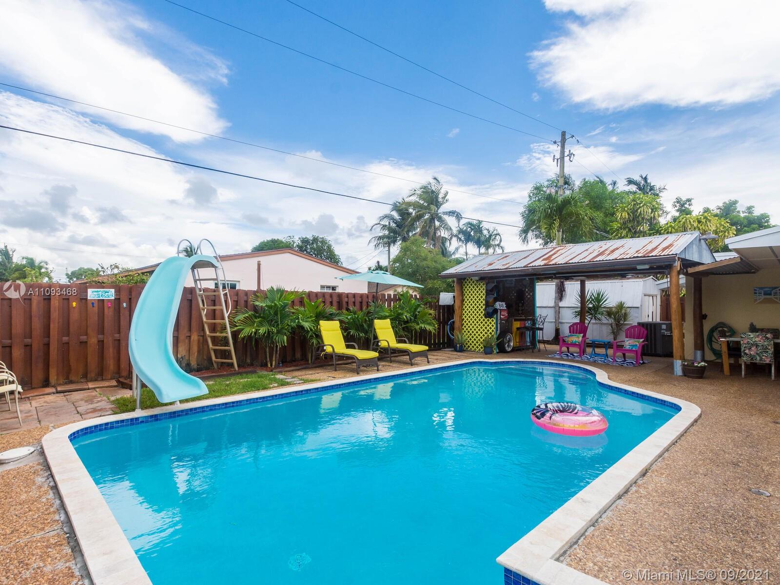 THIS IS THE POOL HOME YOU HAVE BEEN WAITING FOR! Property is located on a well-maintained Hollywood street with a huge corner lot! COMPLETELY UPDATED! BRAND NEW IMPACT WINDOWS & DOORS! All windows feature custom black-out shades! Fresh paint inside & out! Super modern kitchen with concrete countertops, wood cabinets & stainless steel appliances! Large laundry room with stackable washer, dryer, extra refrigerator, tankless water heater, and built-in cabinets & countertops! Home surveillance system with 15 cameras! This home was made for entertainment. The backyard features a covered Tiki Hut with a built-in bar, flat-screen TV, pool slide, fenced-off kids area with fire pit, and gate access for parking boats or RV! Click on the virtual tour to see the YouTube video walkthrough tour!