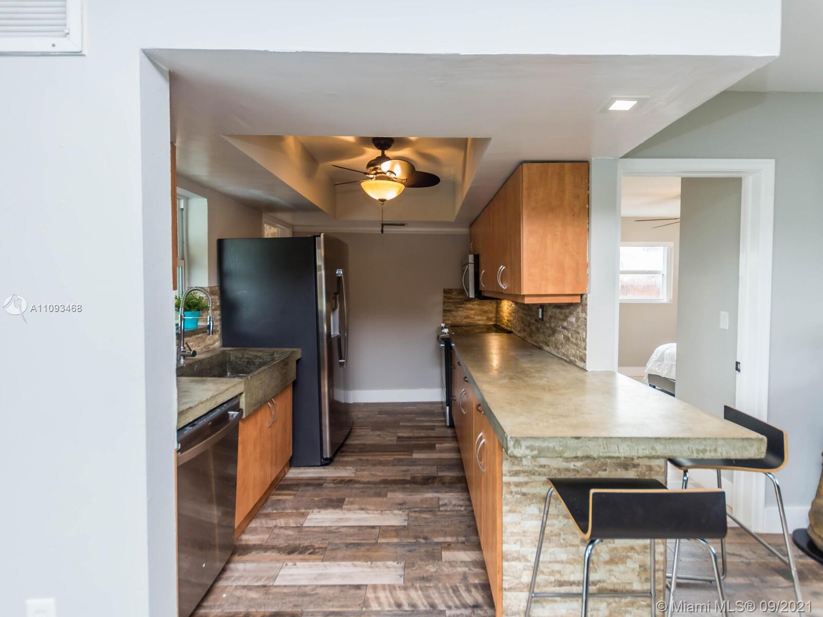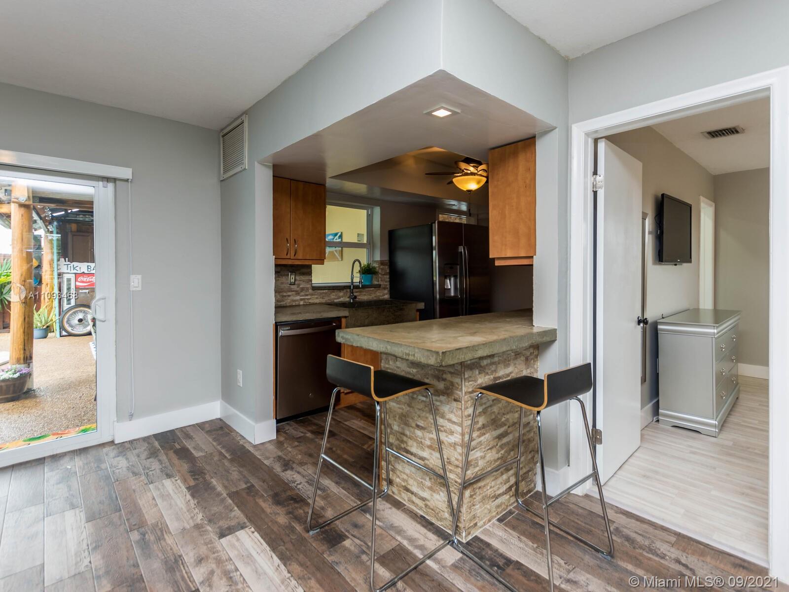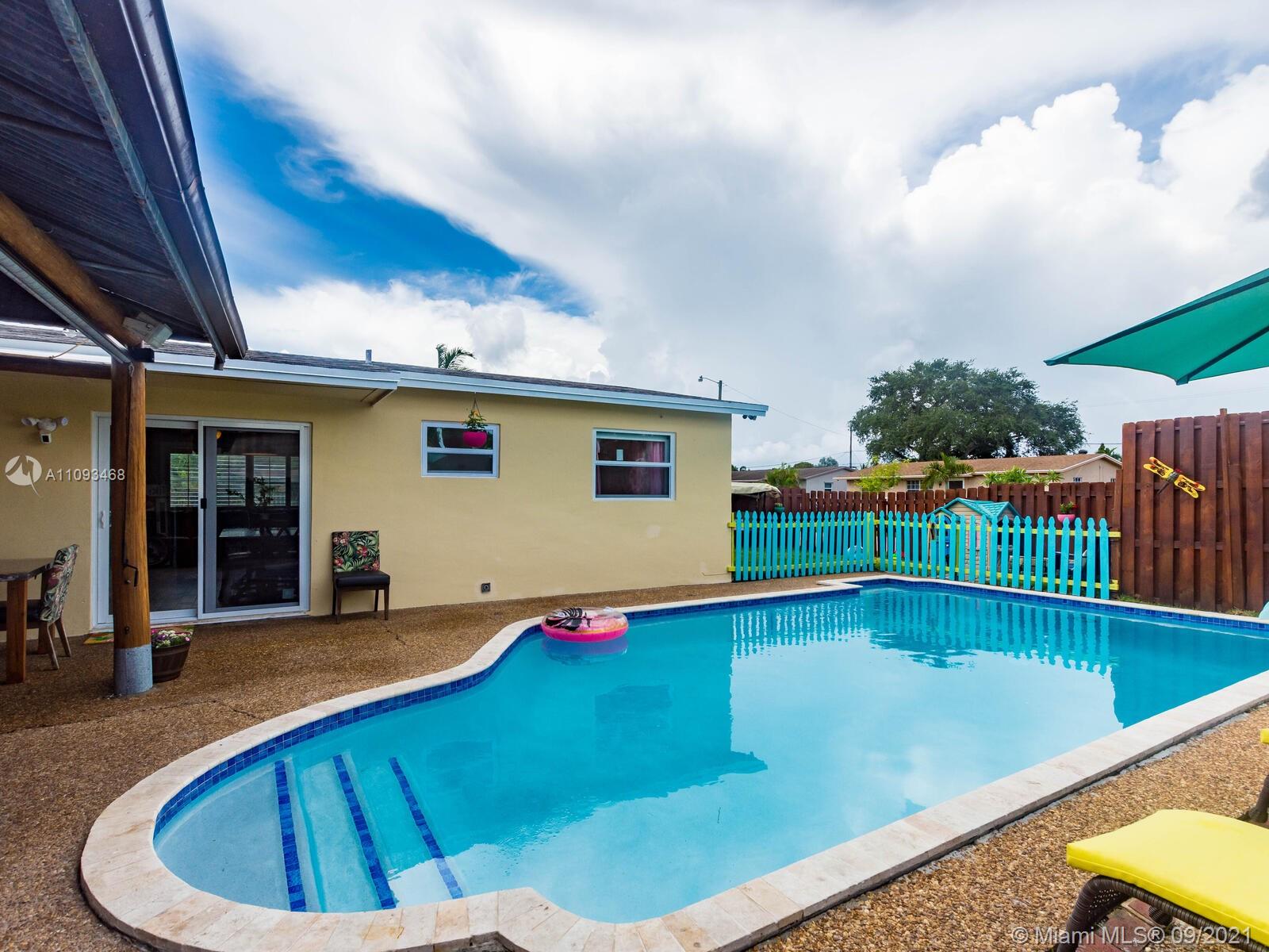 THIS IS THE POOL HOME YOU HAVE BEEN WAITING FOR! Property is located on a well-maintained Hollywood street with a huge corner lot! COMPLETELY UPDATED! BRAND NEW IMPACT WINDOWS & DOORS! All windows feature custom black-out shades! Fresh paint inside & out! Super modern kitchen with concrete countertops, wood cabinets & stainless steel appliances! Large laundry room with stackable washer, dryer, extra refrigerator, tankless water heater, and built-in cabinets & countertops! Home surveillance system with 15 cameras! This home was made for entertainment. The backyard features a covered Tiki Hut with a built-in bar, flat-screen TV, pool slide, fenced-off kids area with fire pit, and gate access for parking boats or RV! Click on the virtual tour to see the YouTube video walkthrough tour!