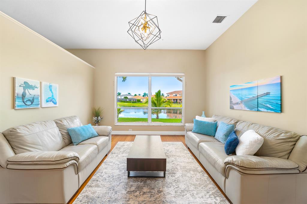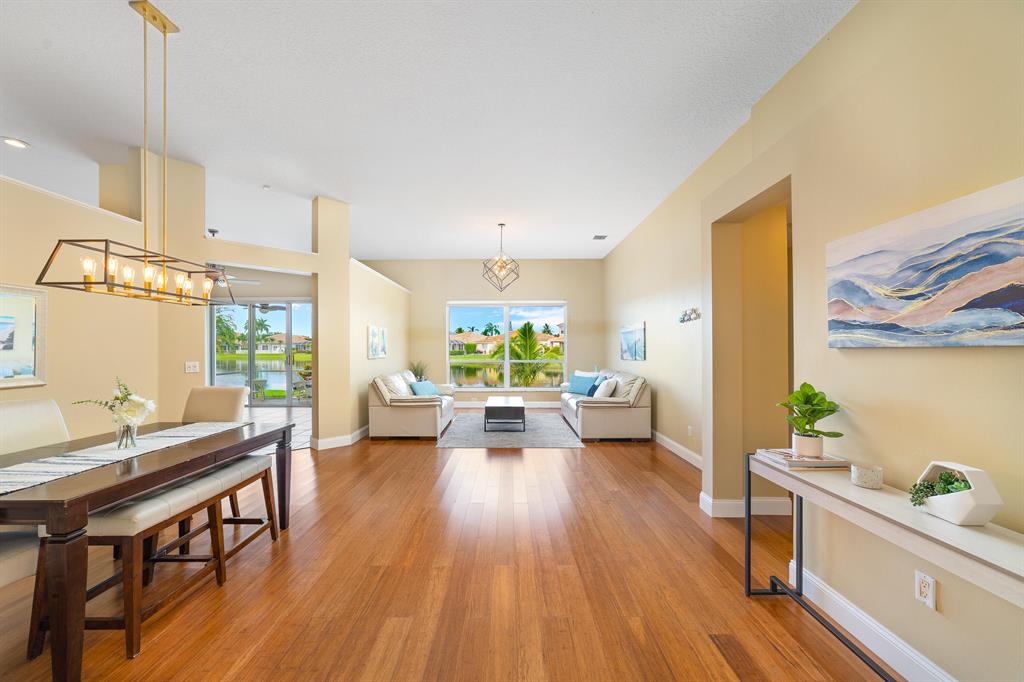Great Boca Raton property with unbelievable, panoramic lake views & is located in the highly desirable Boca Winds community. As soon as you walk through the leaded glass front door you immediately notice the water views through the living room. You're greeted with high ceilings throughout & a fantastic, private triple split bedroom floor plan. The home features wood themed flooring & tons of natural light. The updated kitchen has a large island, granite countertops, stainless steel appliances & opens out to the family room with more long panoramic lake views! The large, screened in porch provides the perfect place to relax, entertain & enjoy the water vistas with your morning coffee, or take in the reflections of the moon off the water in the evening. Adjacent to the porch you have a