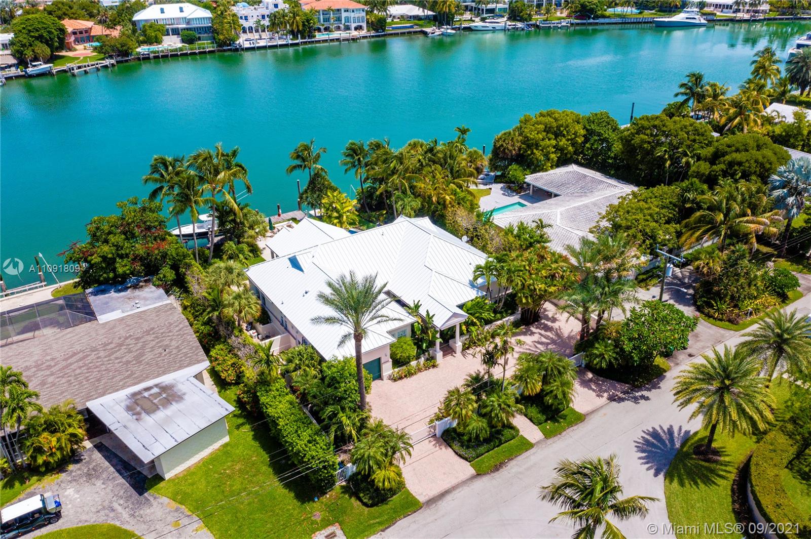 Welcome to one of the most coveted Key Biscayne waterfront locations. Serious Boaters paradise ! Mashta island wide water views, glimpse of the city lights…Biscayne bay and tip of Harbor Point. Gated, 1 story elevated residence, Elegant & easy floor plan. All 3 bedrooms en suite, Master suite overlooks Hurricane Harbor. Large reception area w/ high ceilings, double door impact glass opening to large covered terrace overlooking Hurricane Harbor, w/ direct access to pool, garden and dock. Adjacent to living room area:elegant library w/ powder room & formal dining area. Enclosed kitchen w/direct access to dining room. Staff quarters 1/1. 1 car enclosed garage. Broker remarks for 3 D & floor plan, Unbranded virtual tour w/ Matter port .