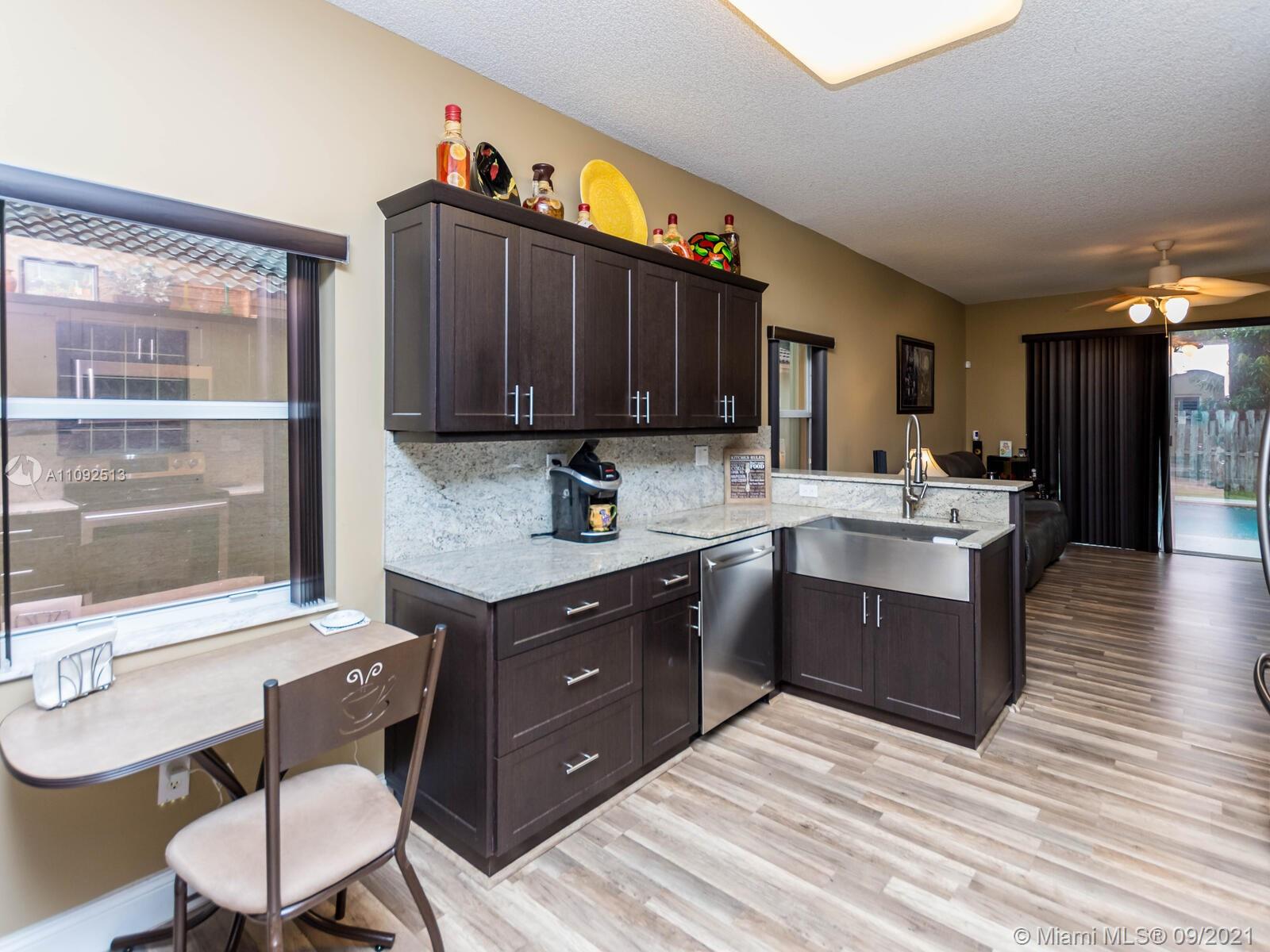 Welcome home to the sought-after resort community of Pembroke Isles and this amazing 4 bedroom, 2.5 bath pool home. When you walk into the foyer you will be greeted with soaring vaulted ceilings. The bottom floor features new laminate flooring (2017) throughout the spacious living room, family room, and dining rooms. The kitchen was recently remodeled (2018) with new cabinets with soft close doors and granite countertops. The spacious master suite is on the ground floor and features huge walk-in closets. The upstairs of the home has three generously sized bedrooms along with a recently renovated bathroom (2020). The entertainment space in your new back yard is spectacular. The centerpiece of the large open air patio is an oversized in ground pool. Don't walk...run to see it!