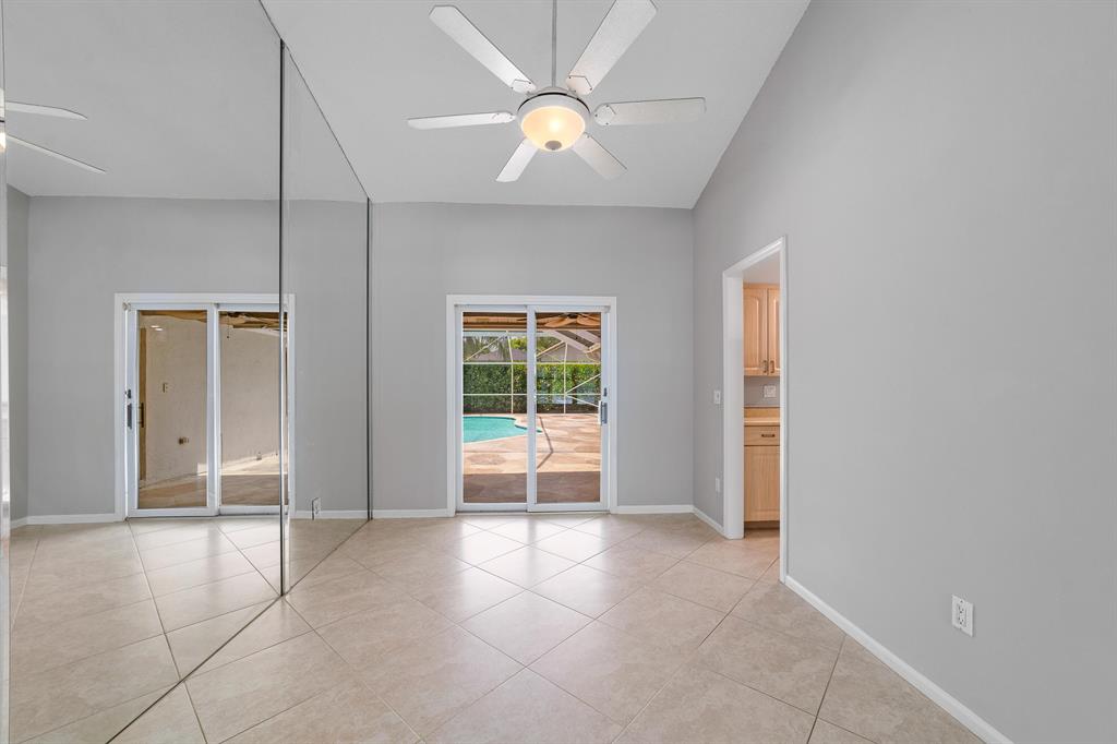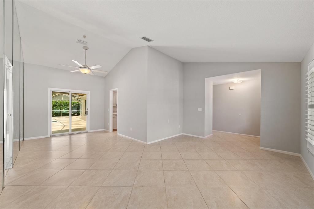 Welcome home! This Boca Raton property checks all the boxes. The home has a terrific location on a cul-de-sac in Cypress Bend. Huge pie shaped lot that offers tons of privacy. As you enter, you immediately notice the soaring vaulted ceilings. The home has tile flooring throughout the living areas and fresh new carpet in the bedrooms. The guest bathroom has been fully updated. Fresh neutral paint on the interior with a split bedroom floor plan. The kitchen opens out into the large family room, perfect for entertaining. Sliding glass doors invite you out to the large stamped concrete patio with large curvilinear pool and huge screened enclosure. The backyard and pool area have terrific privacy with large full hedges on all sides. The property has a two car garage and tons of