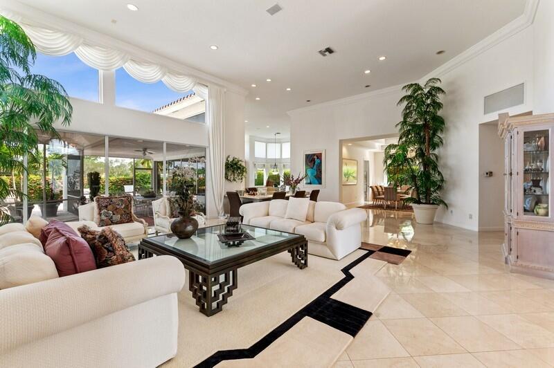 As you enter this stunning estate home, you are immediately struck by the soaring ceilings, marble floors, and wall of windows opening onto the backyard oasis. The open floorpan includes a breathtaking great room, open and airy family room, eat-in kitchen, formal dining room, wet bar, oversized office and split bedrooms--each with an ensuite bath. The expansive master bedroom includes his and her bathrooms, three walk in closets, and opens out onto the resort-style terrace. The backyard haven includes a pool, waterfall, spa, and large screened in patio--perfect for entertaining. Pocket sliders from both the living and family rooms open into the Florida room creating true indoor/outdoor living. The 2.5 car garage holds an additional washer/dryer and contains and air conditioned storage room