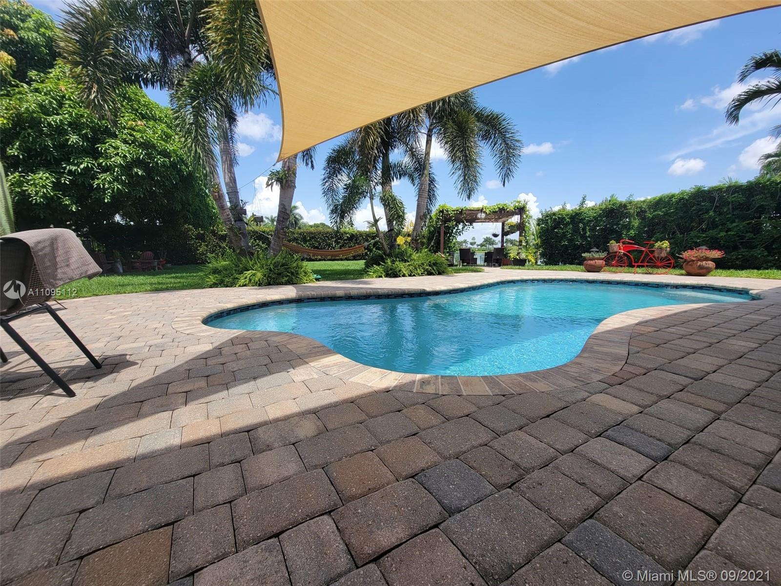 Beautiful home on a spacious lot in Monarch Lakes with an open floor plan with view from the front entrance to the yard and pool area. Waterfront & no rear neighbor, Newly re-surfaced pool w/ heater. Large paved patio with pavers extending out towards lake to a beautifully appointed gazebo. Solar w/ heater. AC unit w/ uv light. Air circulation system. Master has bamboo floors, walk in closet with built ins, dual vanity, jacuzzi tub and separate shower. Waterproof vinyl flooring throughout main areas. Master bedroom and living area open up to the pool with French doors. Ten foot ceilings. Separate laundry room. Keyless entry for front door and garage. Located in a cul-de-sac. Gated community. Conveniently located near elementary school, shopping and restaurants.