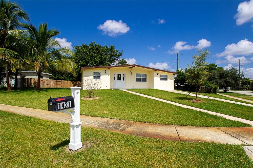 STUNNINGLY REDONE AND READY TO MOVE INTO. THIS TURNKEY HOME COULD BE AN INVESTOR SPECIAL! A GORGEOUS LARGE CORNER LOT (10,947 sqft), 4 BEDROOM/2 BATH BRIGHT HOME HAS NEWLY INSTALLED FLOORS, ROOF, IMPACT WINDOWS, A/C, STAINLESS STEEL APPLIANCES (WHIRLPOOL), GE MICROWAVE, WASHER/DRYER (MAYTAG). EASY TO MAINTAIN YARD WITH SPRINKLER SYSTEM HAS AMPLE ROOM FOR A POOL WITH LOTS OF SPACE TO ENTERTAIN. SANDSPUR PARK IS ONE BLOCK AWAY. ABOUT 1/2 MI TO US1, SHOPS and RESTAURANTS. ABOUT 10 MINUTE DRIVE TO THE INTRACOASTAL/BEACHES. According to Broward County Prop. Apprais. The new adjusted square feet (used for assessment purposes) will be 1294, with the under air area being 1248 square feet. (see the last 3 photos)