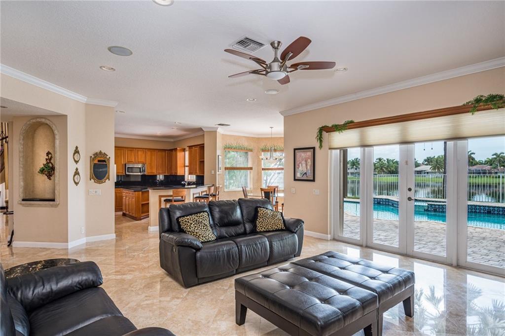 Prime Weston Hills Waterfront/Pool Estate in Victoria Isles. 5365 SF under air. 5 bedrooms, 5 1/2 bathrooms, plus office, plus billiards room, plus loft. Oversized pool, spa, and decking for any gathering. High end curb appeal with circular driveway. Soaring ceiling heights with spiral wood staircase to give off elegant feel and bonus second staircase to kids wing. Custom Fireplace in living room. Marble floors throughout main downstairs. Extremely bright spacious kitchen with walk in pantry. Executive office downstairs and billiard/game room. Upstairs features one of the largest Masters and sitting areas in all of Weston that won't disappoint in closet fomo for his/hers. Balcony off master wont' disappoint. 3 additional bedrooms upstairs along with loft. 1/1 guest room as well.