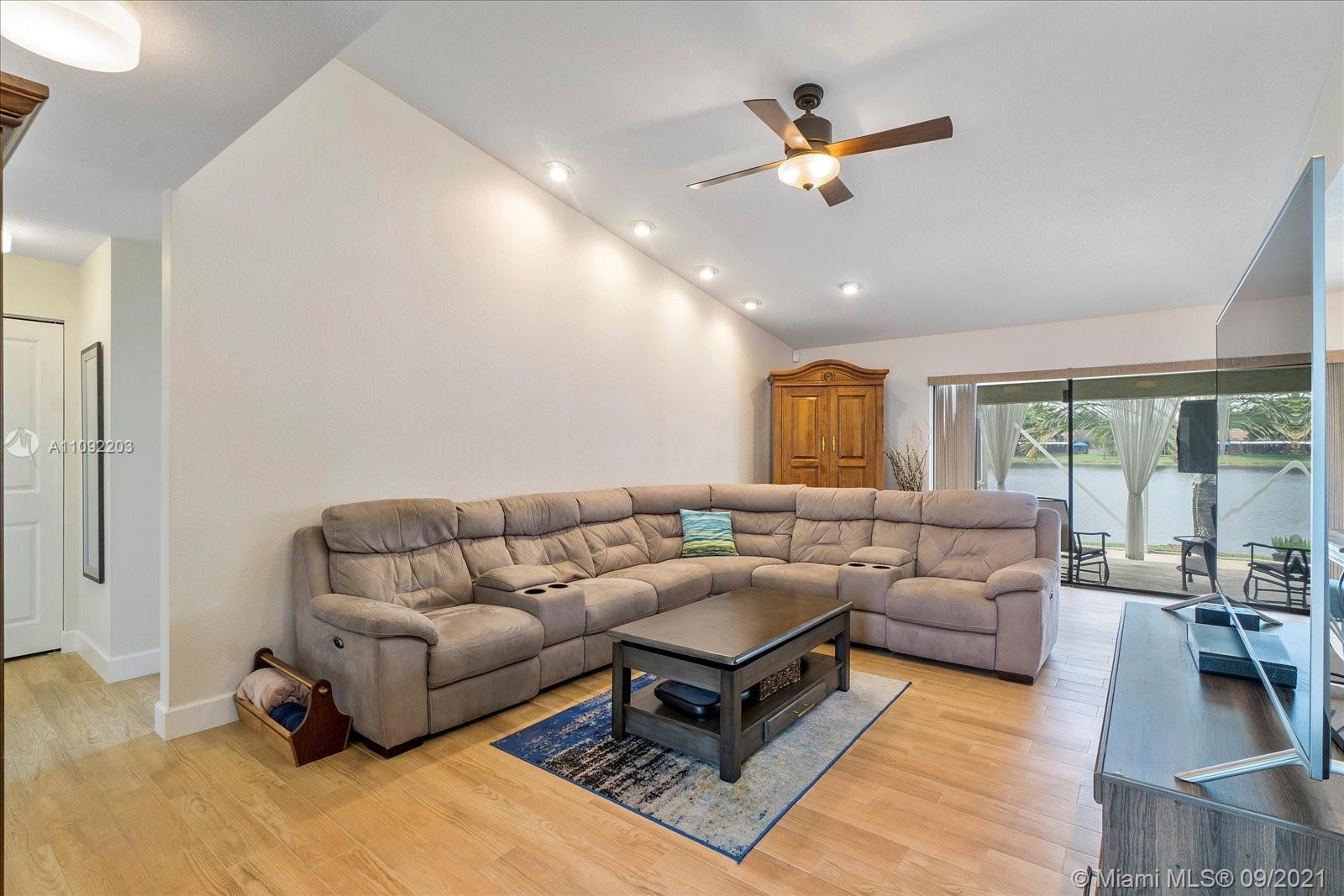 MOVE-IN READY LAKEFRONT 3 bedroom 2 bath home with Pool! This immaculate home offers AMAZING water views from most of the home. It features tile and wood flooring, an open floor plan & a screened Lanai with pool. You’ll love the spacious kitchen that opens to the family room with granite counters, new backsplash & stainless-steel appliances. The living room opens to the dining room which is great for entertaining. Come relax in the heated pool or on the screened-in Lanai & have your breath taken away by the SPECTACULAR SUNSET lake views. Large two-car garage, plenty of additional parking in the driveway, storm protection for the windows & beautifully landscaped yard to enjoy. Did I mention there are No HOA FEES! All this just minutes to parks, shopping, dining & all major highways.