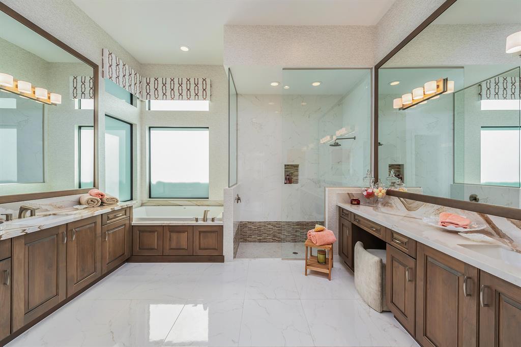 Two story home with one story living Great Room Floor plan with a master bedroom on main floor. Very Open! 12' ceilings throughout main level. Open concept with dry bar and large Island. Custom Millwork throughout this home. Large Sliders that lead out to a summer kitchen with outdoor fridge all in stainless steel and overlooking pool and lake. Custom Ceiling and wall details throughout. Upstairs Bonus Room with balcony and private bedroom with full bath great for guests!