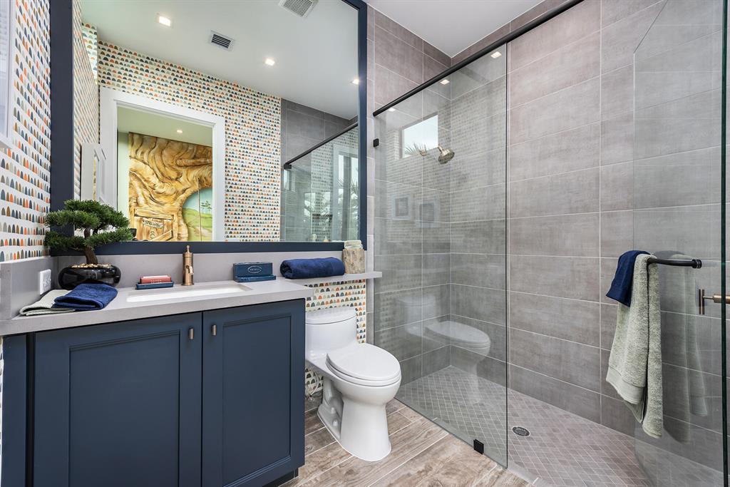 Modern one-story, open concept home with floor to ceiling windows/sliders throughout overlooking the stunning custom pool and beautiful lake. This home features a fabulous entertaining backyard with upgraded summer kitchen and custom pool with floating steps, water feature and bubblers. Some of the many highlights include: unique entry with water feature and 12' doors, 16' ceilings in living and dining areas, natural stone driveway/walkway, Ipe garage doors and extensive Ipe accents on exterior walls, modern gourmet kitchen with integrated appliances, spectacular modern master bath with floating vanities and walk-in integrated tub and shower overlooking the lanai.