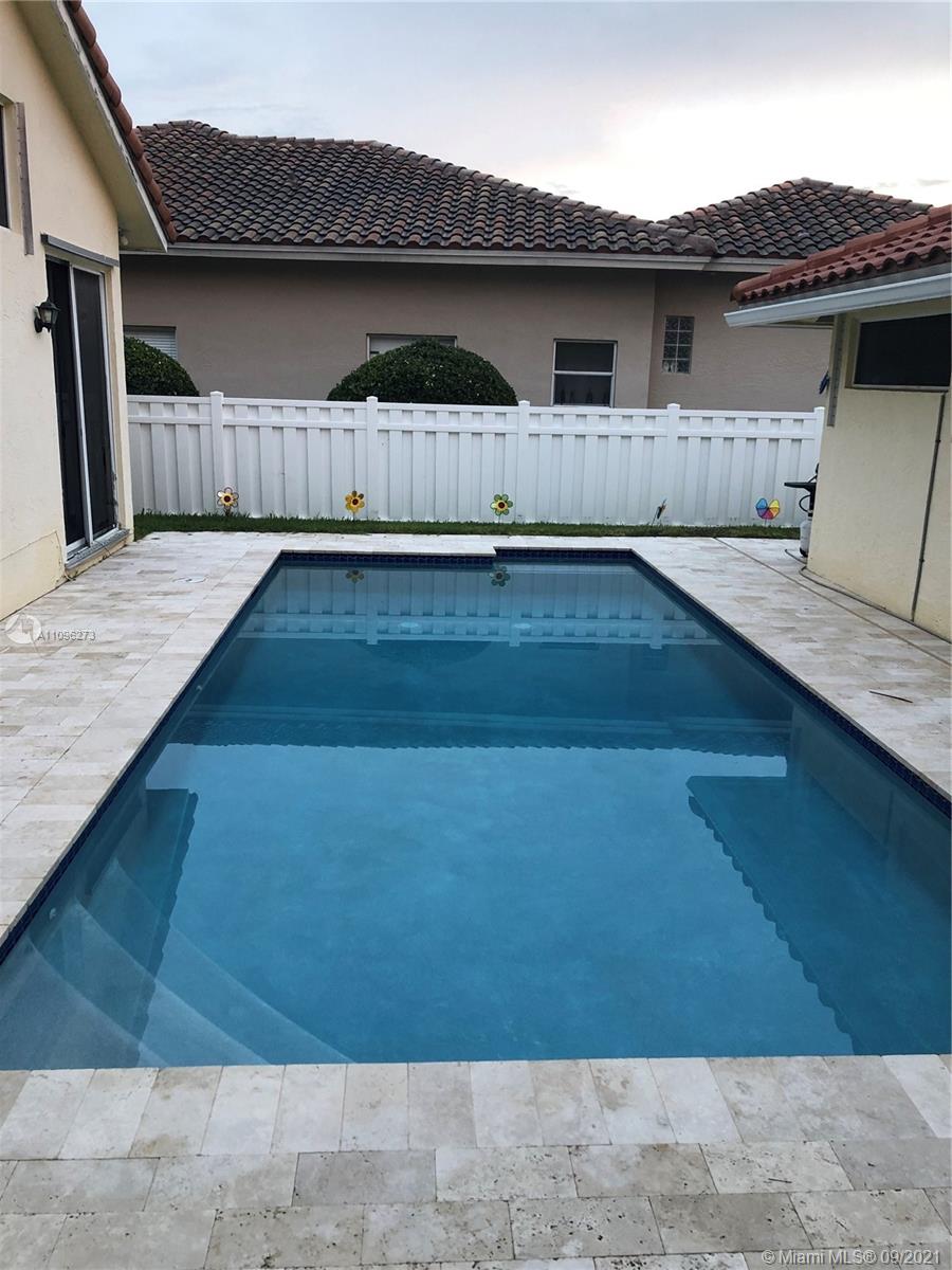 Gorgeous unique home in Kensington Coral Springs with 4 bedrooms, 2 bathrooms and 3 car garage with a 6 car driveway. Property is beautifully landscaped on a corner lot. Close to schools, shopping, and the Sawgrass Expressway. Formal living room, large and open family room, dining room and kitchen area with vaulted ceilings. Great for entertaining. Roman tub with separate shower in the master. Laminate, hard floors throughout the home with open and spacious natural light coming in. Private backyard with a salt water pool area. Washer/Dryer, All Stainless Steel Appliances, hurricane panels throughout the home with garage hurricane impact doors. Roof only 6 years old. Remodeled kitchen with quartz countertops and soft closing cabinets. You will love this community & all it has to offer!