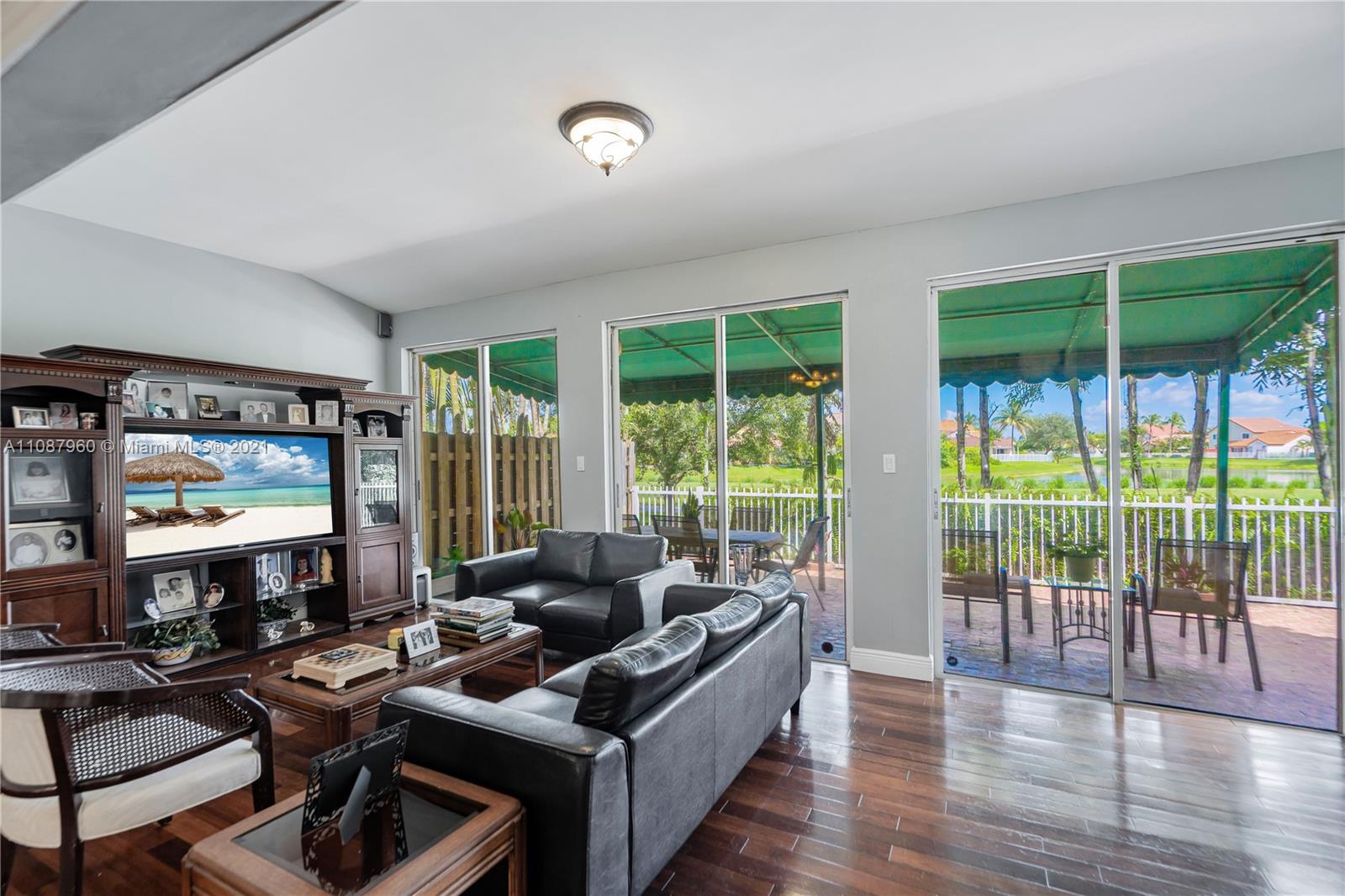 Outstanding 4/3 single family 2,967 sq ft home directly on Silver Fox Golf Course in prestigious Doral Dunes. Beautiful unobstructed golf/lake views. Very spacious formal living, dining, added family room and kitchen w/ tall bay windows, informal dining, island, wood cabinets, granite counters + SS appliances. Brazilian cherry wood and marble in first floor. Chicago bricks and canopy in relaxing patio. Wood/wrought iron stairs up to bedrooms. Huge master with terrace, marble bathroom (shower, jacuzzi, bidet). New roof under warranty till 2028. Brand new A/C. Gated community with 24hr guard. Access to Doral Park Country Club w/excellent amenities: pool, gym, tennis, basketball, volleyball, kid's playground, sauna, 2 restaurants, bar and more. Must see it! Call listing agent.