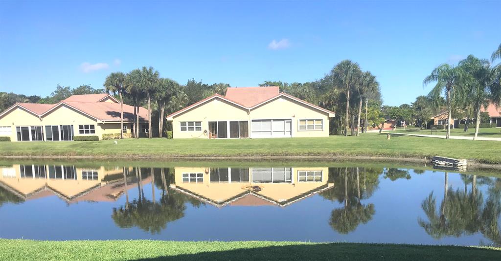 Fantastic lake views!! LOW HOA FEES Spacious 2/2 villa IN 55& with lots of upgrades and a bonus den! Beautiful, well located community in Boca Chase.Kitchen and master bath has lovely granite counter tops. Tastefully done window treatments, eat in kitchen, skylights, high ceilings with plenty of high hats and lots more. Brand new A/C unit-Club house offers tennis, pool, gym & more! MUST SEE!!all measurements are approx.