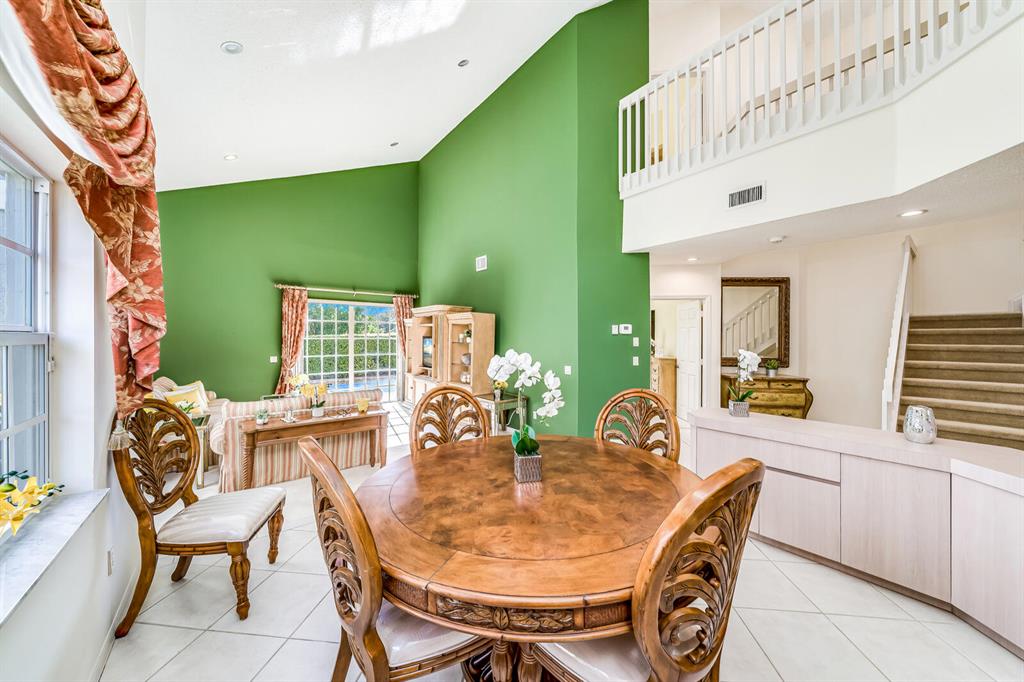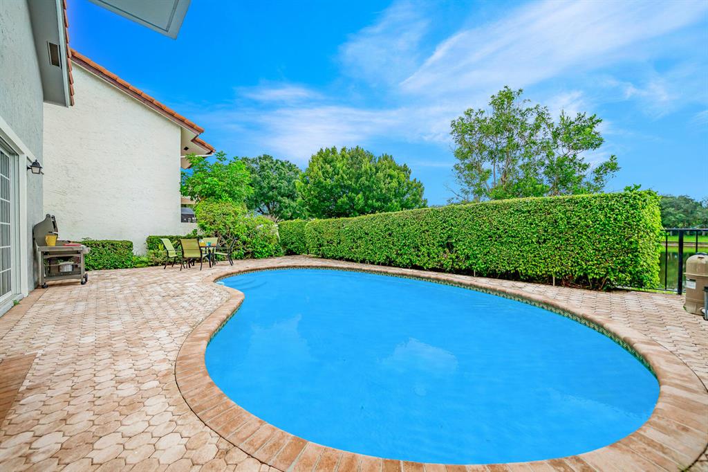 Mediterranean inspired community of Villa Del Sol/Villa Stel in Boca Pointe has 3 bedroom, 3 full baths, 1 half bath, 2 car garage plus a pool and is on the water with huge water views! You can have it all! Dramatic entrance w/soaring 2 story vaulted ceilings. Enjoy the sense of openness, volume, & space with this light and bright home with its open floor plan. Enter into foyer which leads to dining room and living room with plenty of windows, sliders and sky lights! Updated Kitchen features a big center Island with cooktop, stainless appliances, granite counter tops, tile backsplash, tons of custom wood cabinets, tile backsplash, a big picture window over the sink, recessed lighting, tile flooring, a sunny eat in area Plus