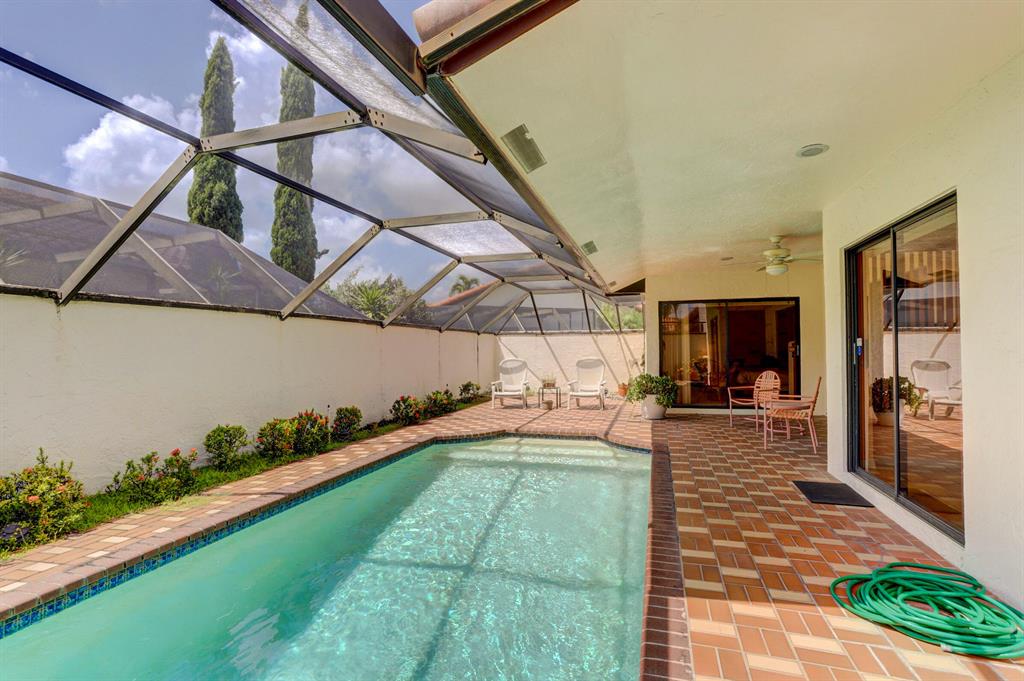 Welcome home to Pradera, a gated community, conveniently located in Central Boca! This 2-bed, 2-bath, plus den, courtyard home, is in immaculate condition and cared for by the original owner. Bursting with natural light, vaulted 14' ceilings in the living room, large and spacious floor plan with split master ensuite bedrooms with walk-in closets. Den can easily be converted into a 3rd bedroom. 2 car garage with ample guest parking. Enjoy the warm Florida climate and relax in your own private, screened-in pool and patio. Cozy up to the fireplace during the cool winter months and enjoy the holidays!